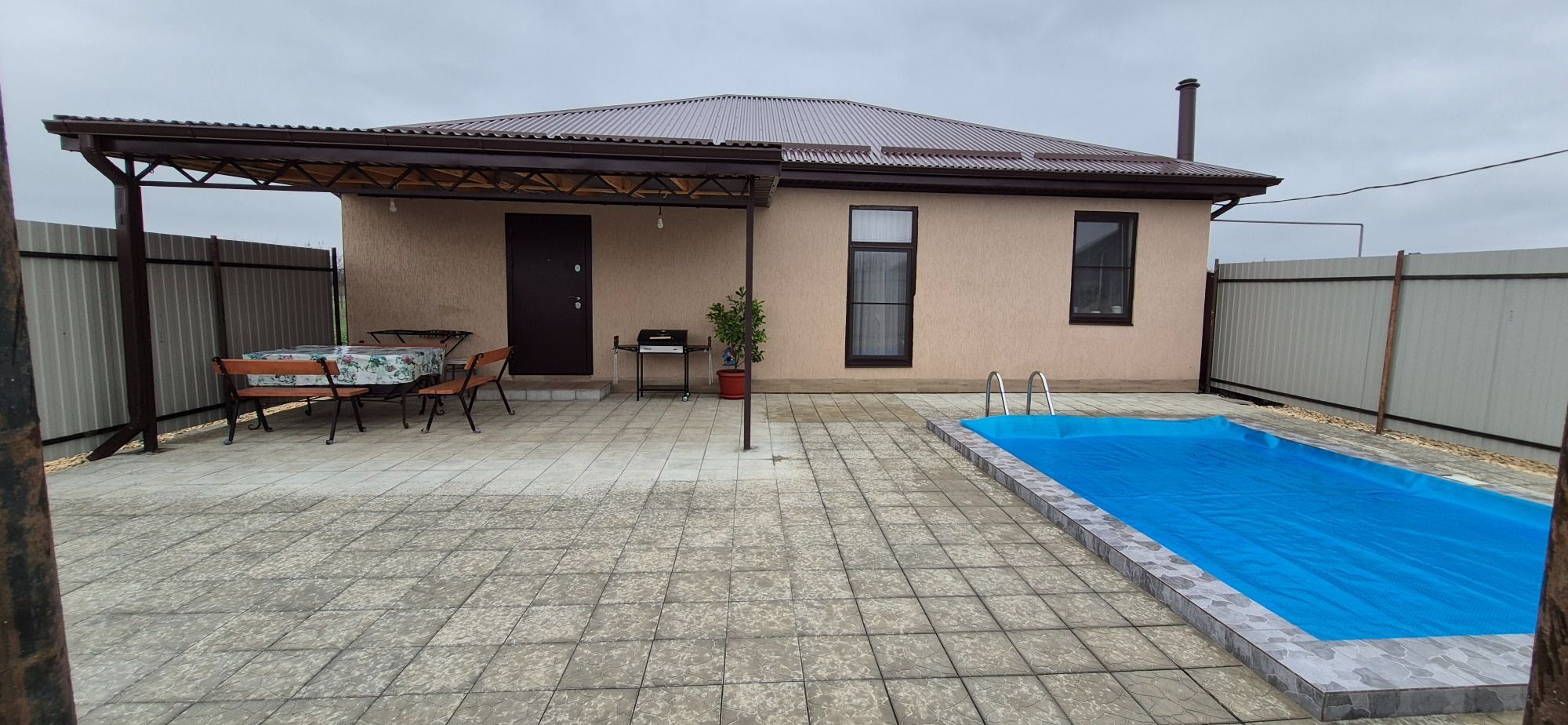 Дом оснащен всем необходимым для комфортного пребывания гостей. Отапливаемые полы. Дом рассчитан на 6 человек, возможны дополнительные места. На территории есть бассейн (круглогодично подогреваемый) и парковочные зона.