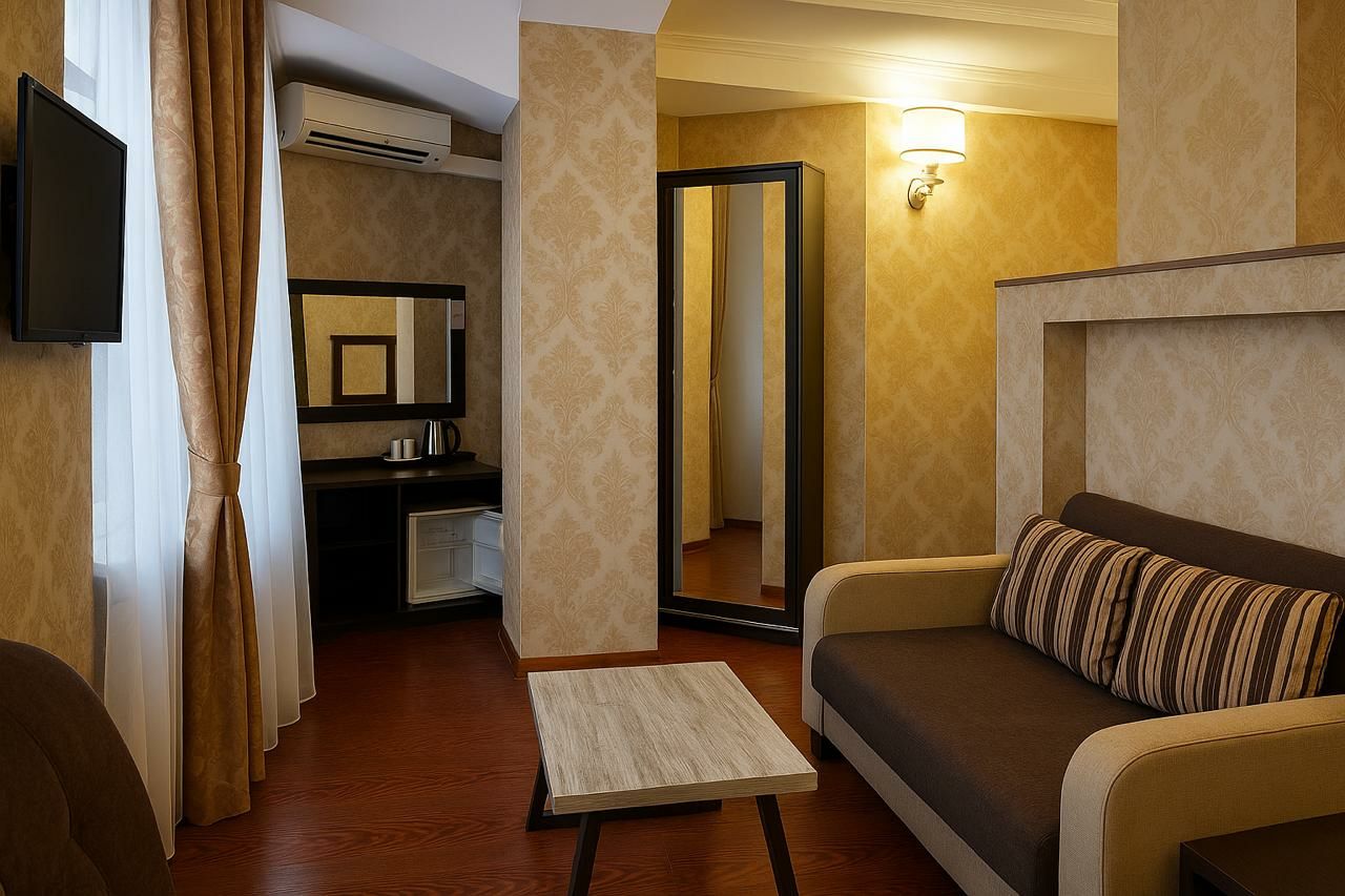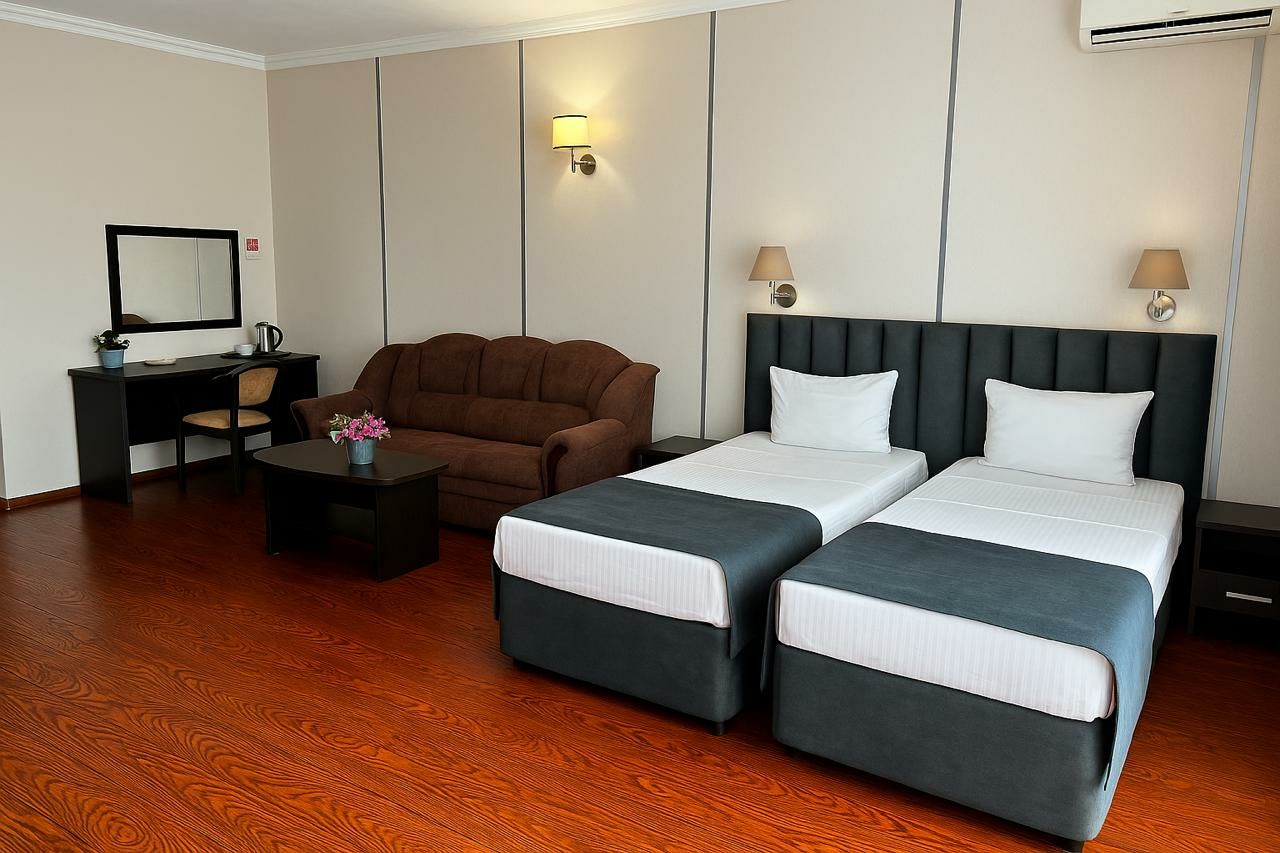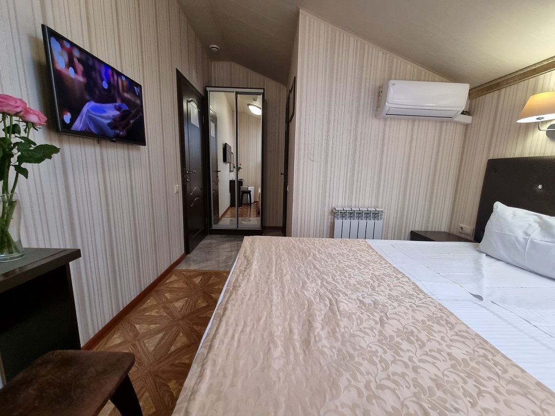 К услугам гостей комфортабельные номера разных категорий. В каждом из них есть своя ванная комната, необходимая мебель, телевизор, мини-холодильник, сплит-система, фен, чайник.