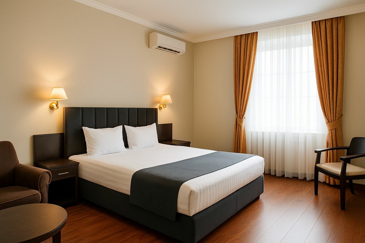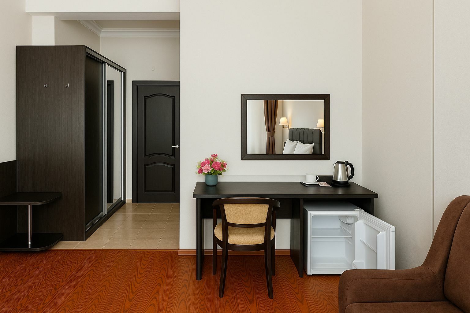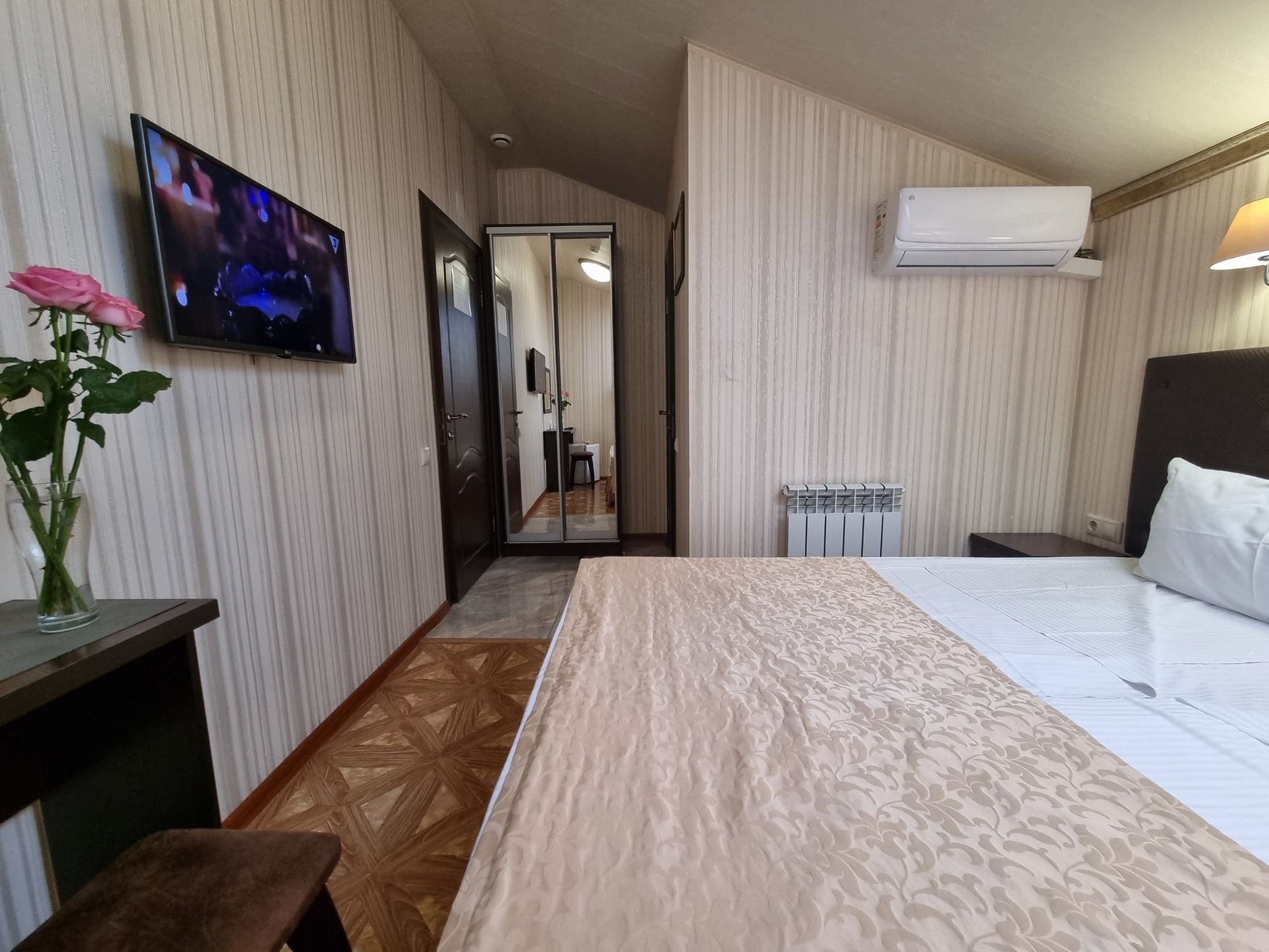 К услугам гостей комфортабельные номера разных категорий. В каждом из них есть своя ванная комната, необходимая мебель, телевизор, мини-холодильник, сплит-система, фен, чайник.