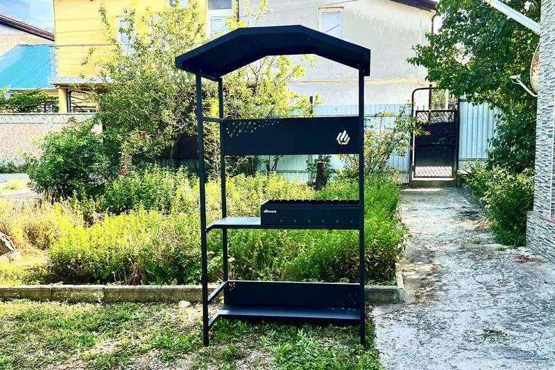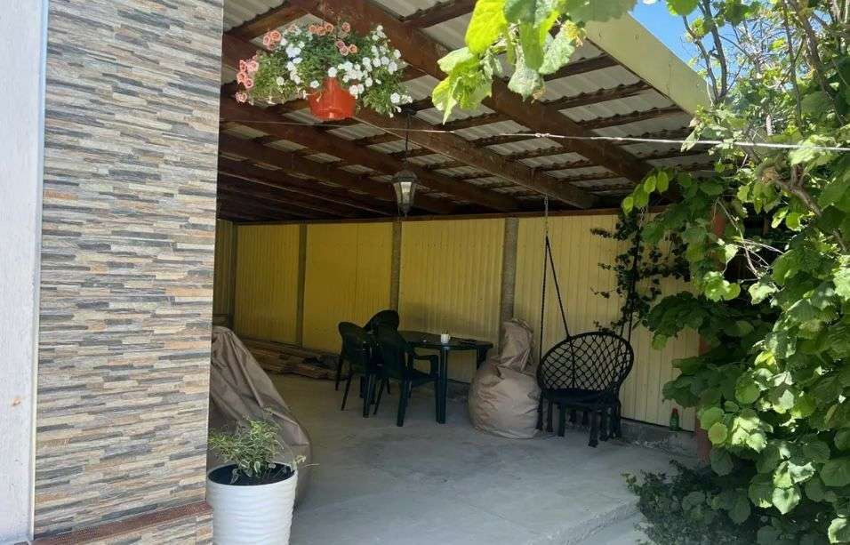Во дворе имеется навес, мангал и зона отдыха.
