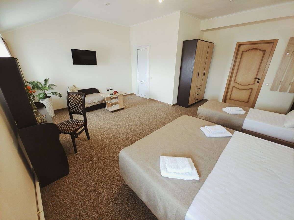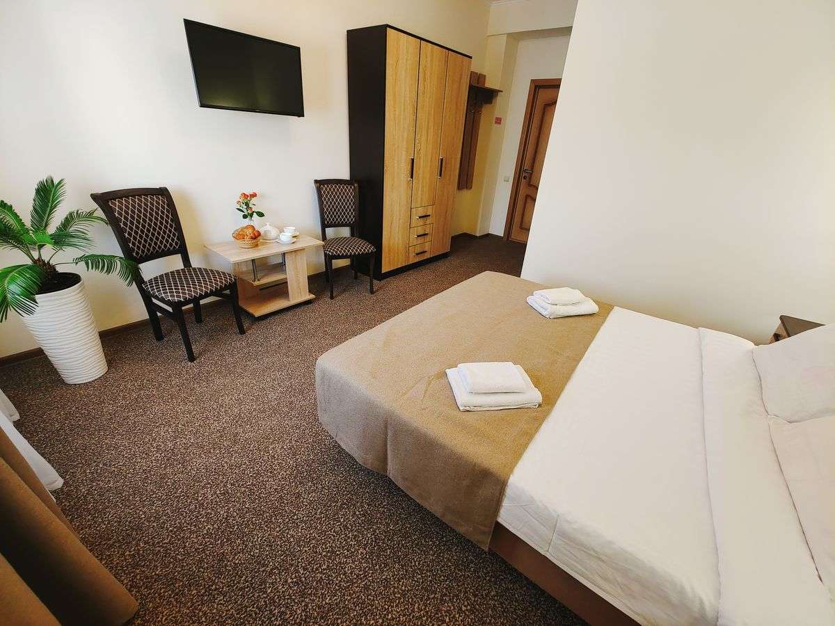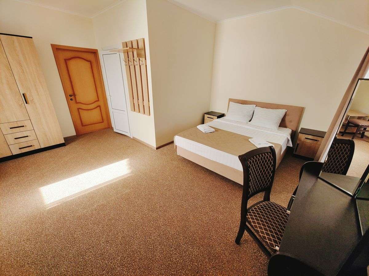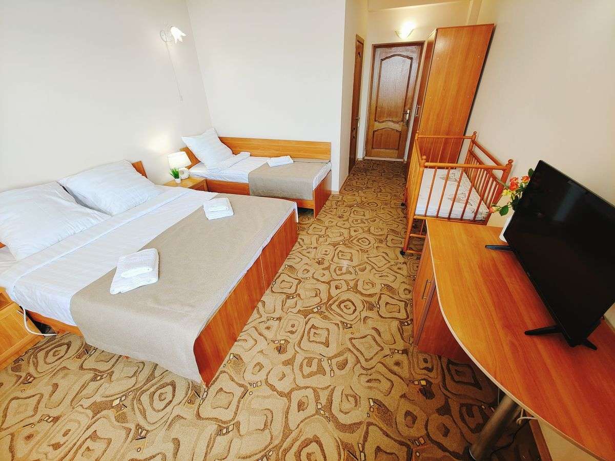 Все номера пансионата просторные, светлые, комфортабельные, оснащенные удобными спальными местами и необходимой мебелью. А из окон большинства номеров пансионата открывается живописный вид на море.