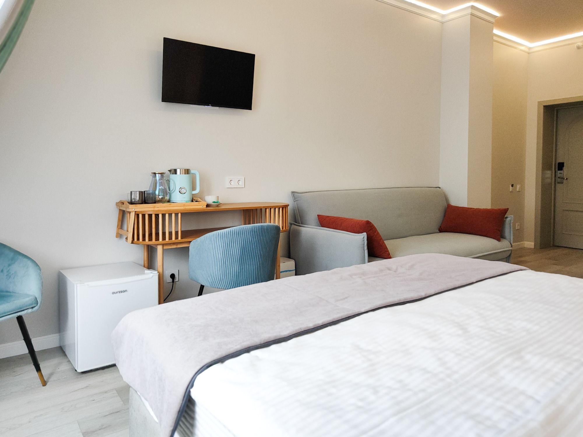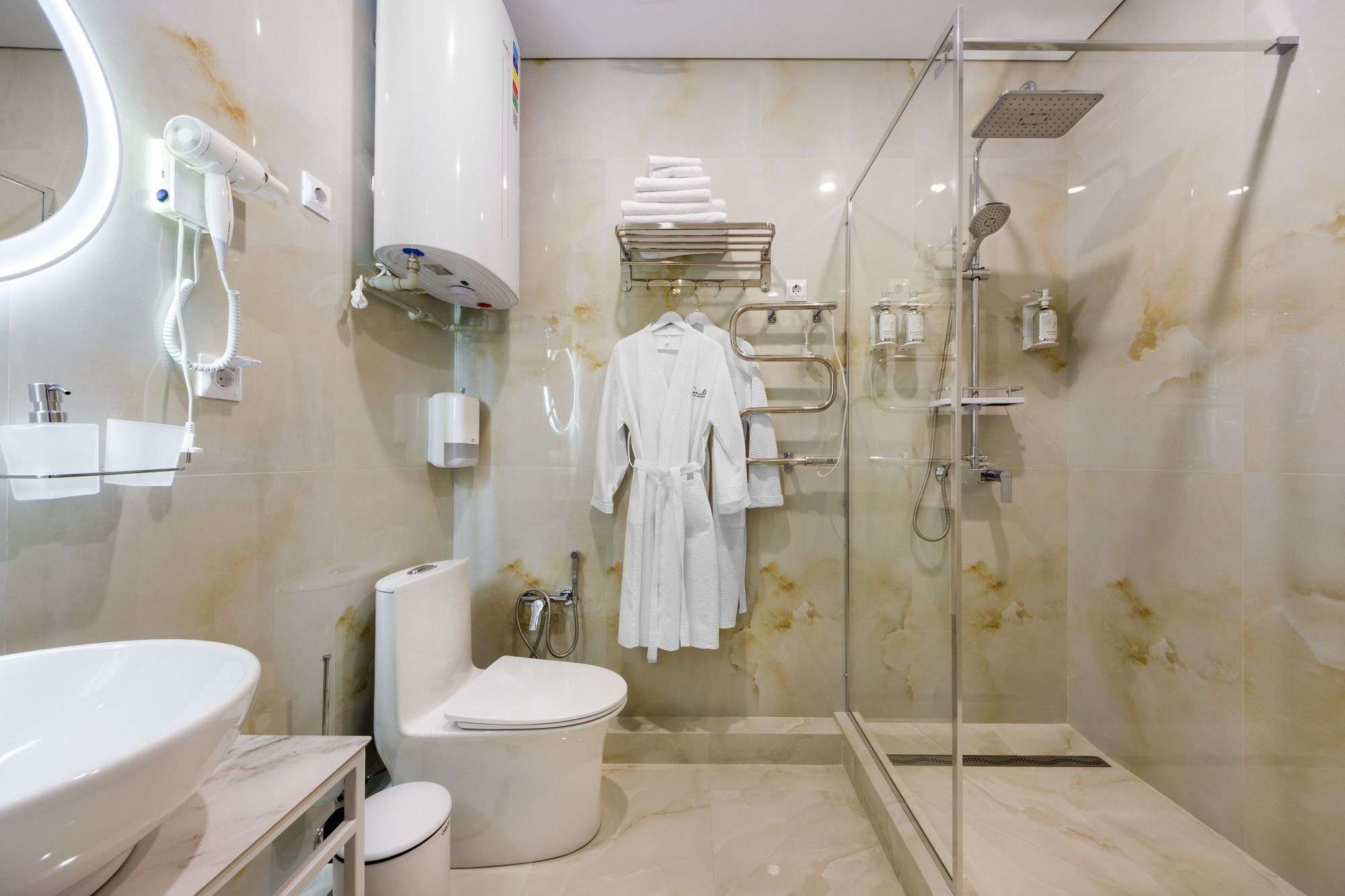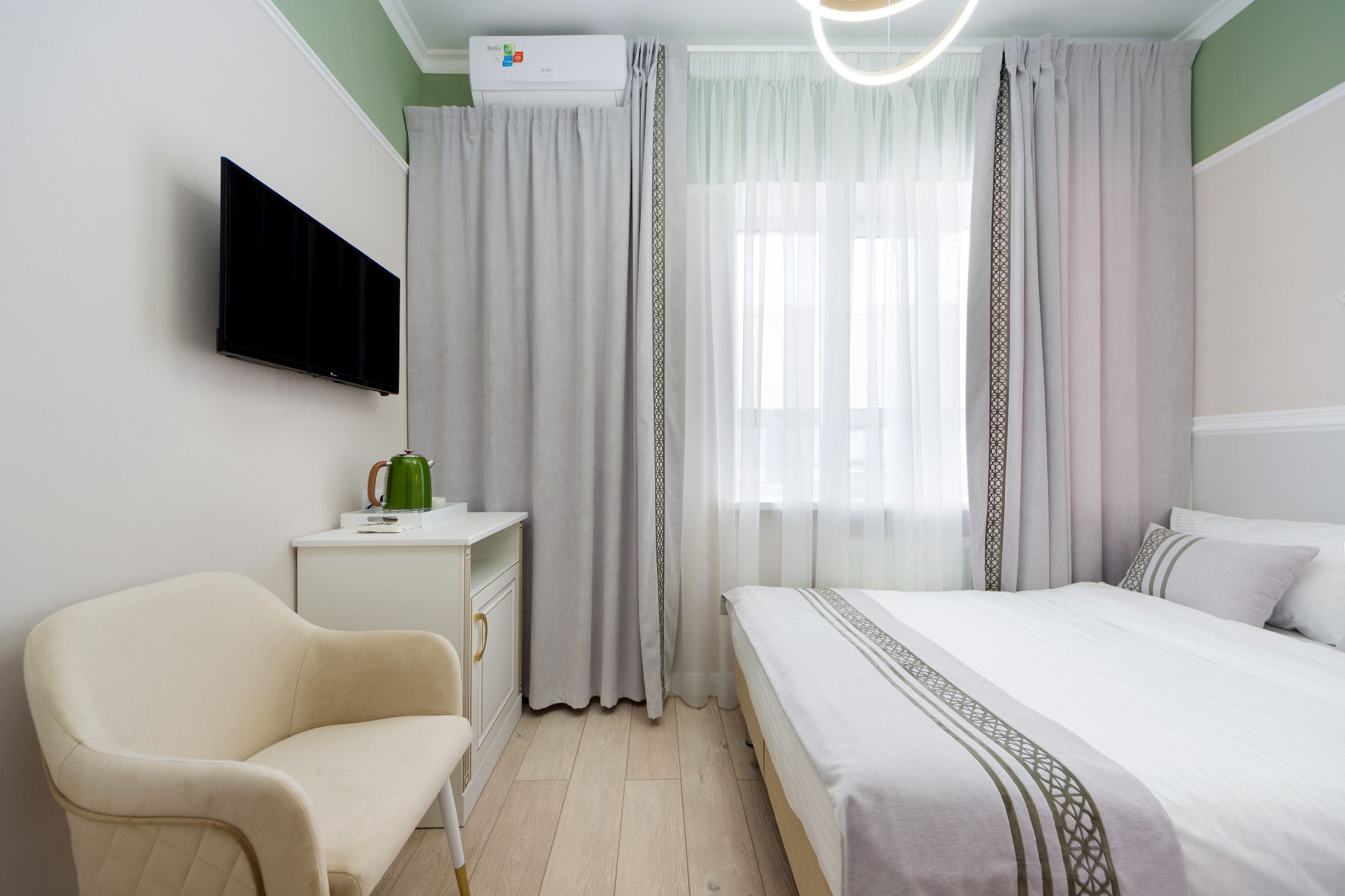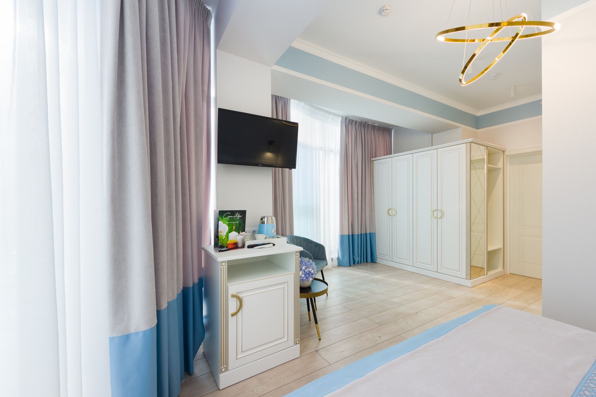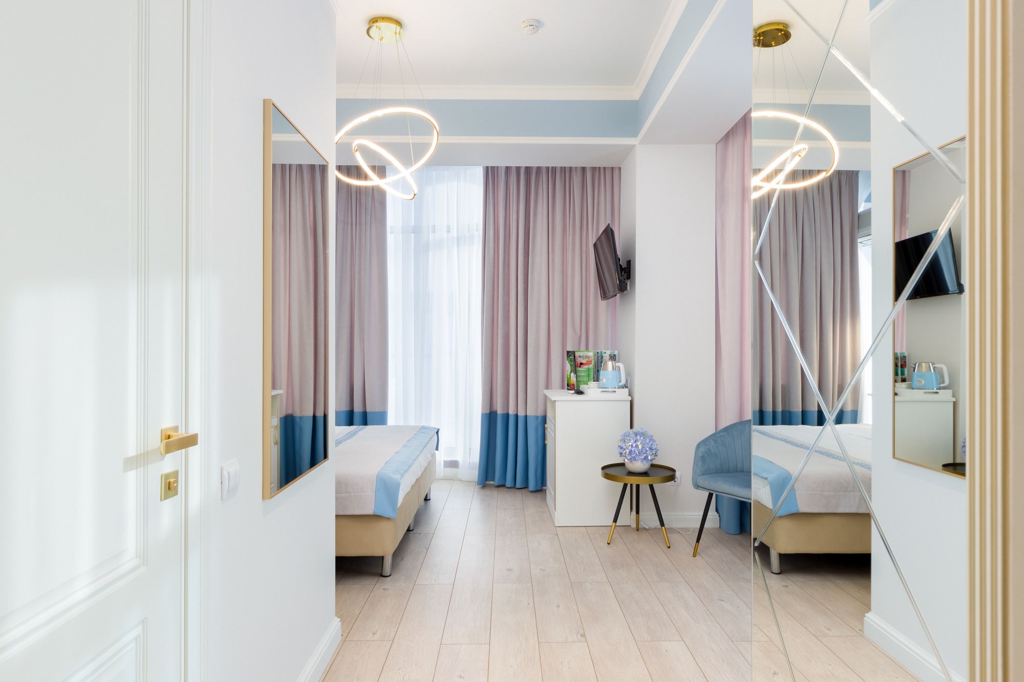 Для гостей подготовлены комфортные номера с удобной мебелью, централизованной системой кондиционирования воздуха, сейфом, мини-холодильником, телевизором, электрочайником и прочим необходимым оборудованием. Ванные комнаты оснащены полотенцами, халатами, тапочками, косметикой, имеется гигиенический душ. Уборка номера ежедневно, смена полотенец раз в 2 дня или по запросу, смена постельного белья раз в три дня или по запросу.