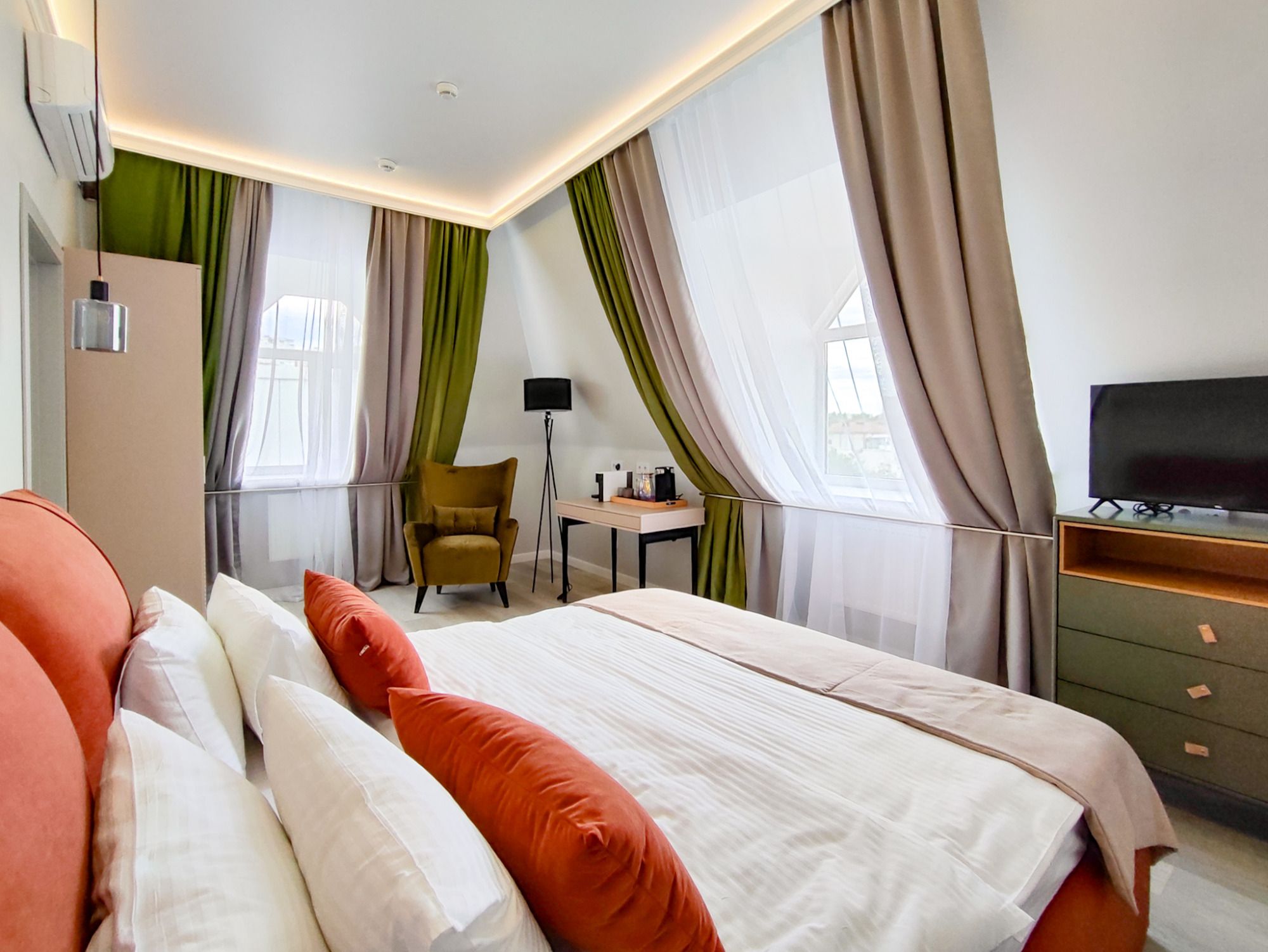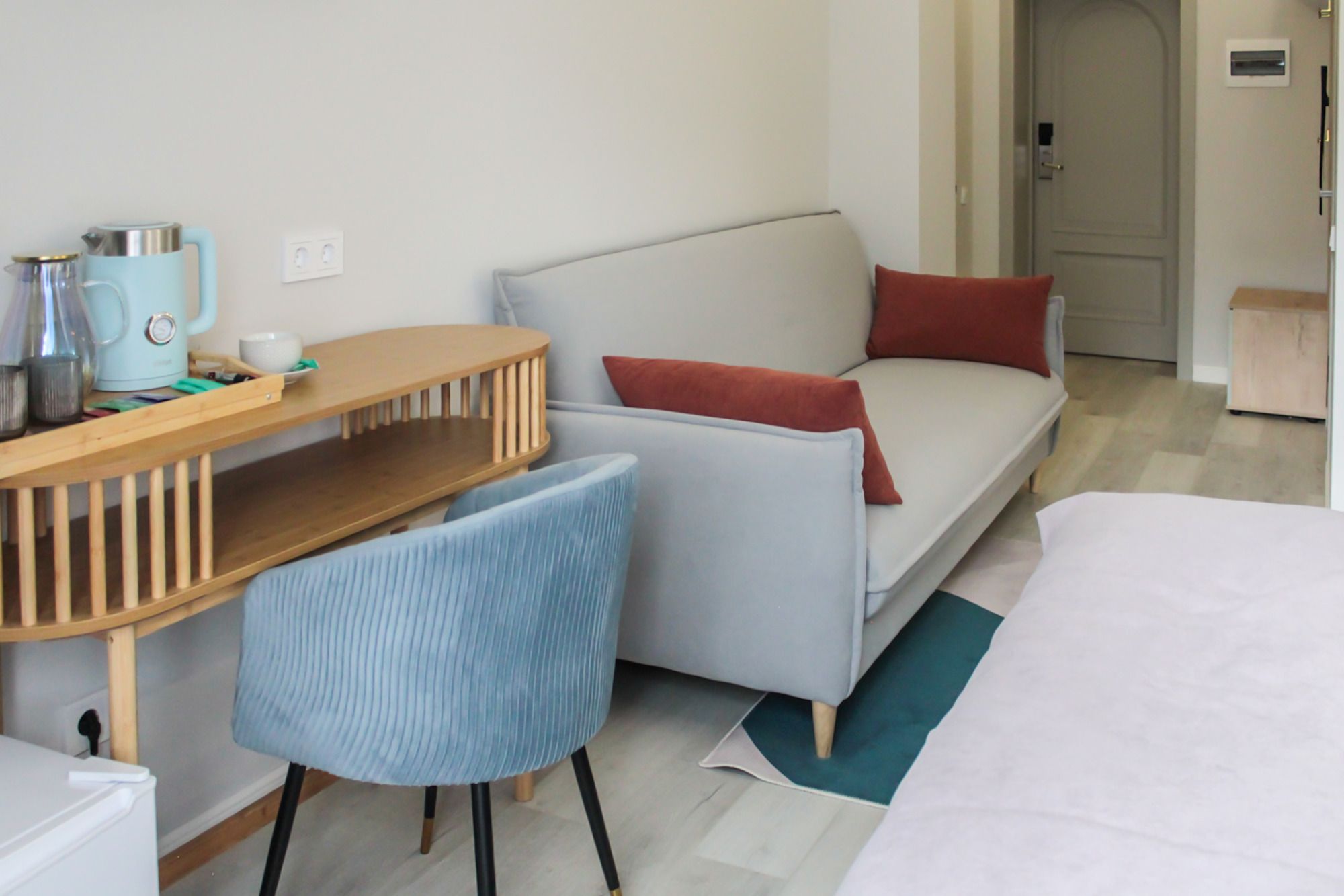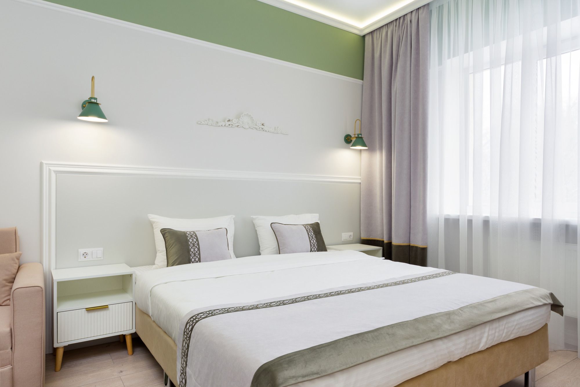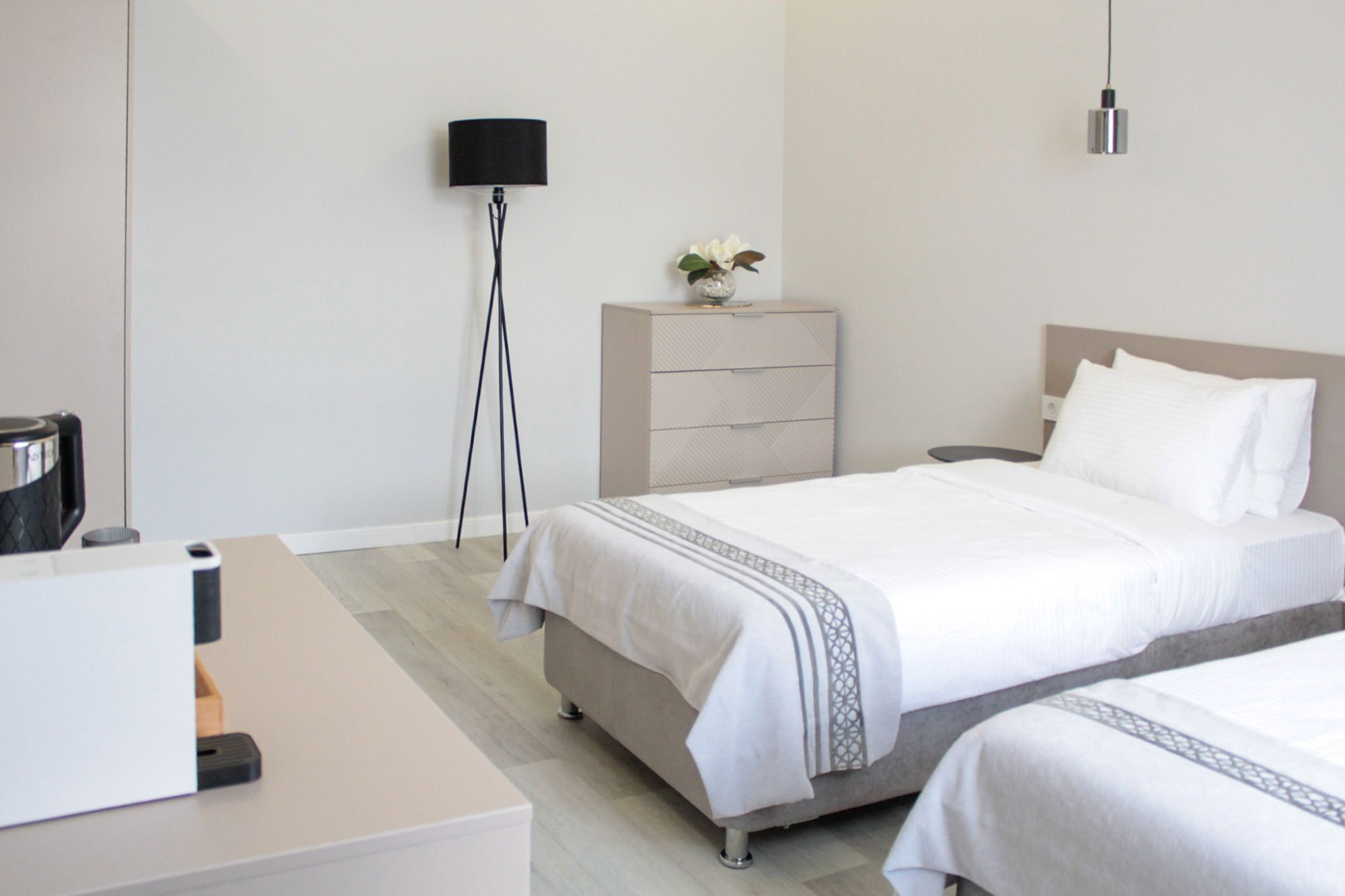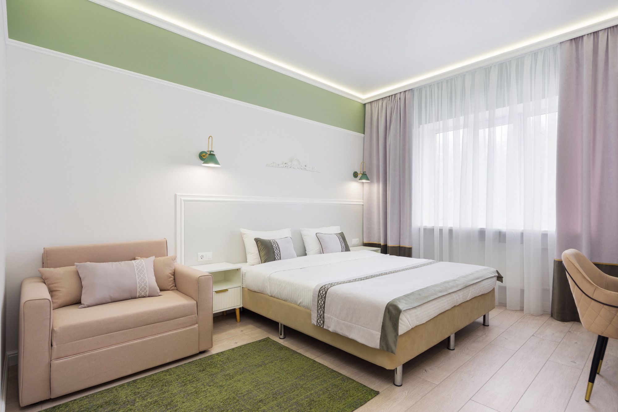 Для гостей подготовлены комфортные номера с удобной мебелью, централизованной системой кондиционирования воздуха, сейфом, мини-холодильником, телевизором, электрочайником и прочим необходимым оборудованием. Ванные комнаты оснащены полотенцами, халатами, тапочками, косметикой, имеется гигиенический душ. Уборка номера ежедневно, смена полотенец раз в 2 дня или по запросу, смена постельного белья раз в три дня или по запросу.