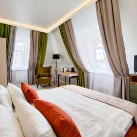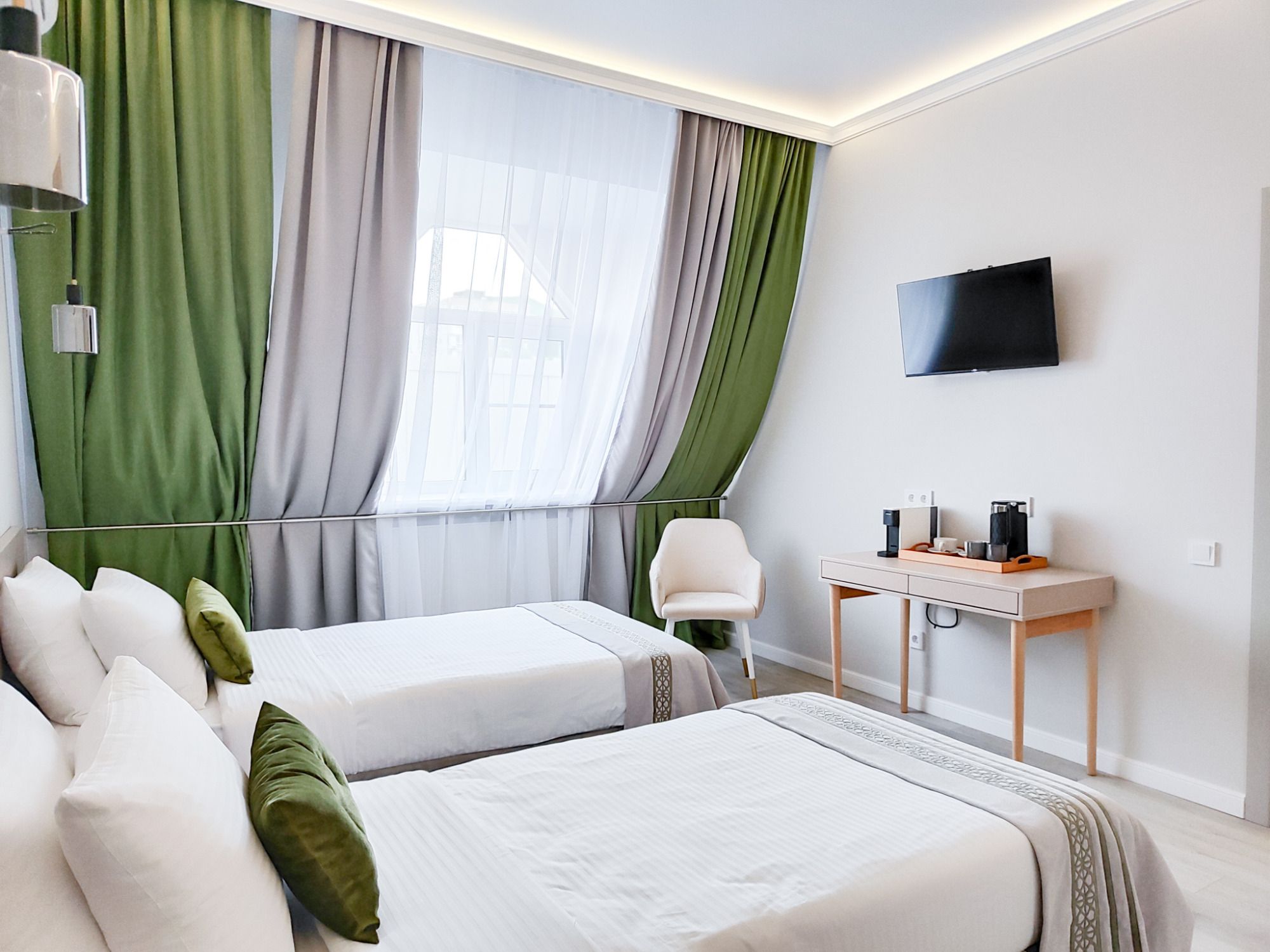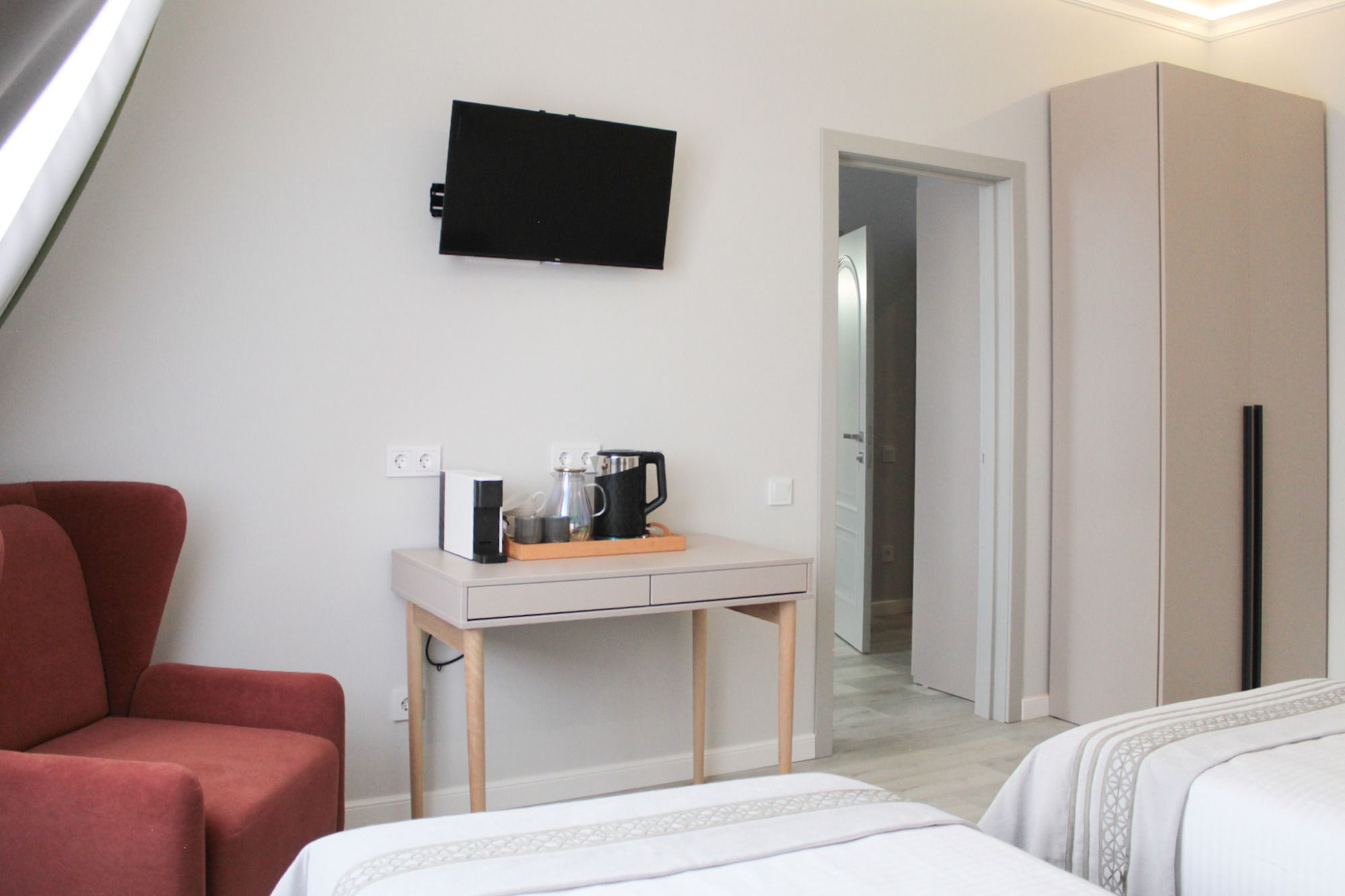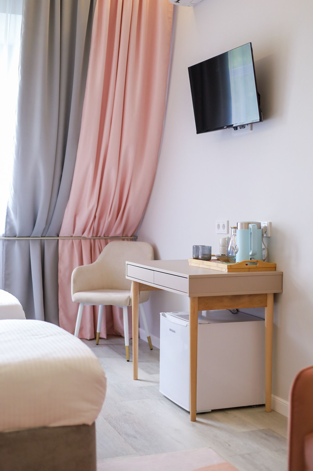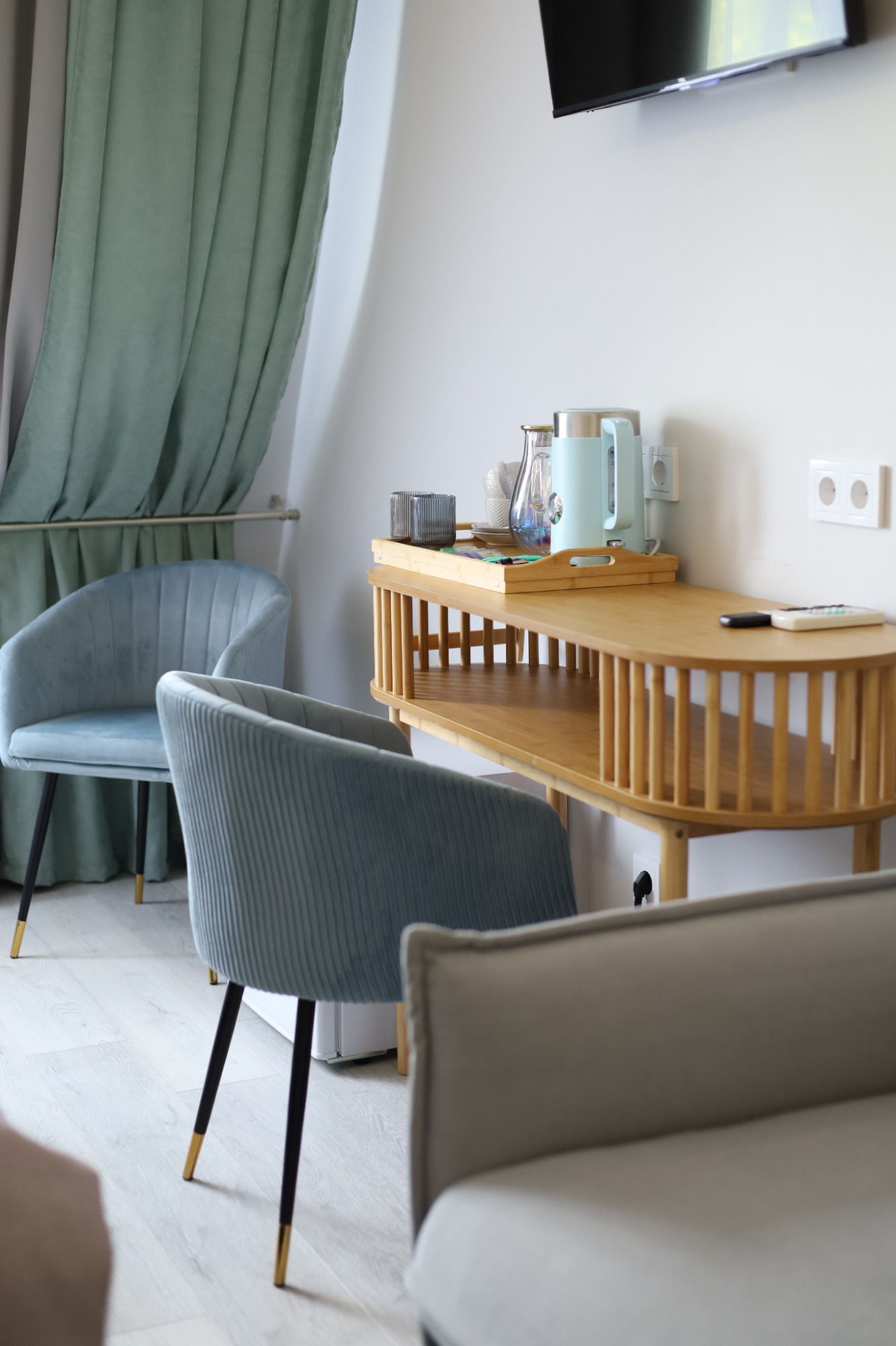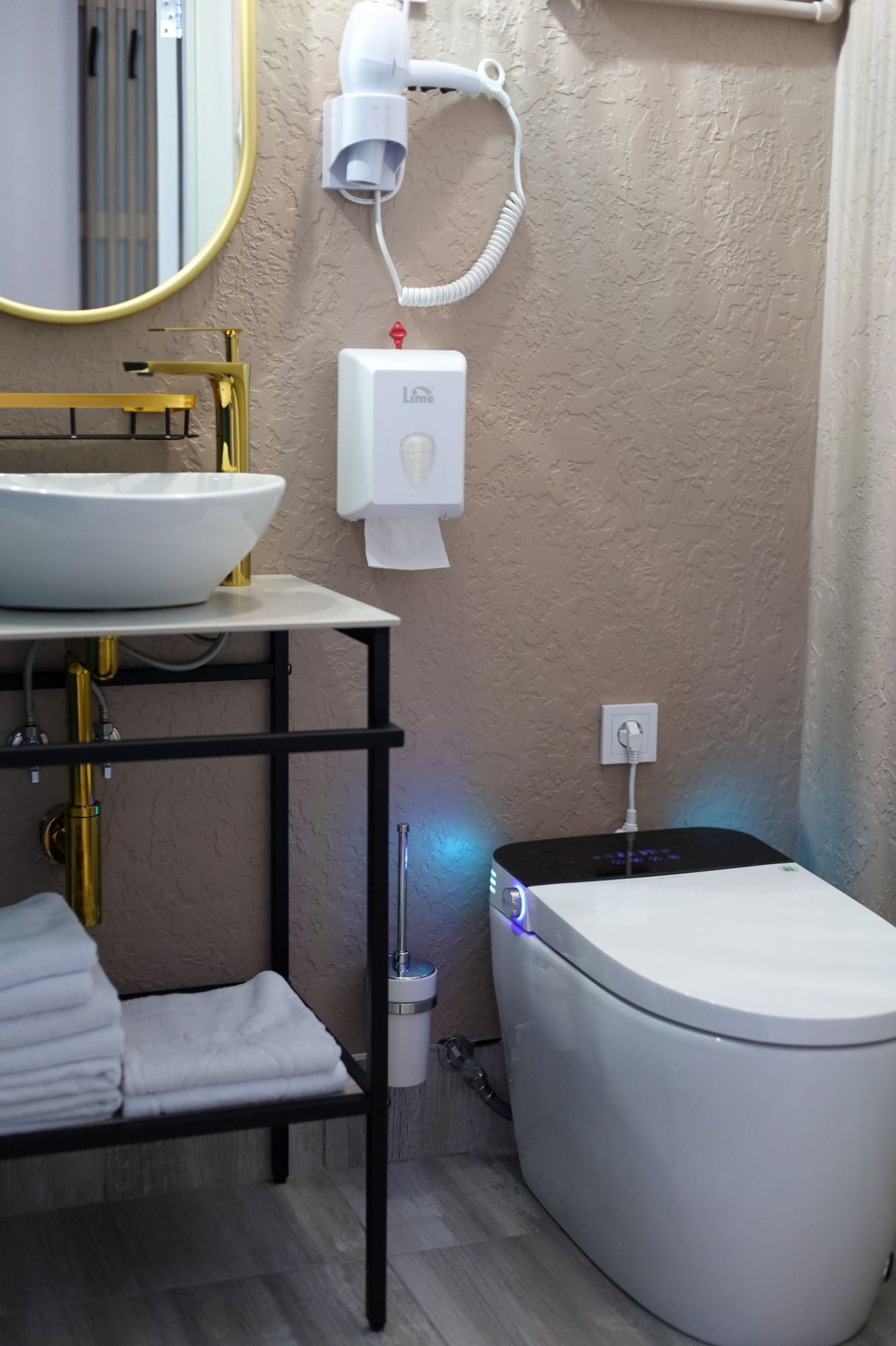 Для гостей подготовлены комфортные номера с удобной мебелью, централизованной системой кондиционирования воздуха, сейфом, мини-холодильником, телевизором, электрочайником и прочим необходимым оборудованием. Ванные комнаты оснащены полотенцами, халатами, тапочками, косметикой, имеется гигиенический душ. Уборка номера ежедневно, смена полотенец раз в 2 дня или по запросу, смена постельного белья раз в три дня или по запросу.