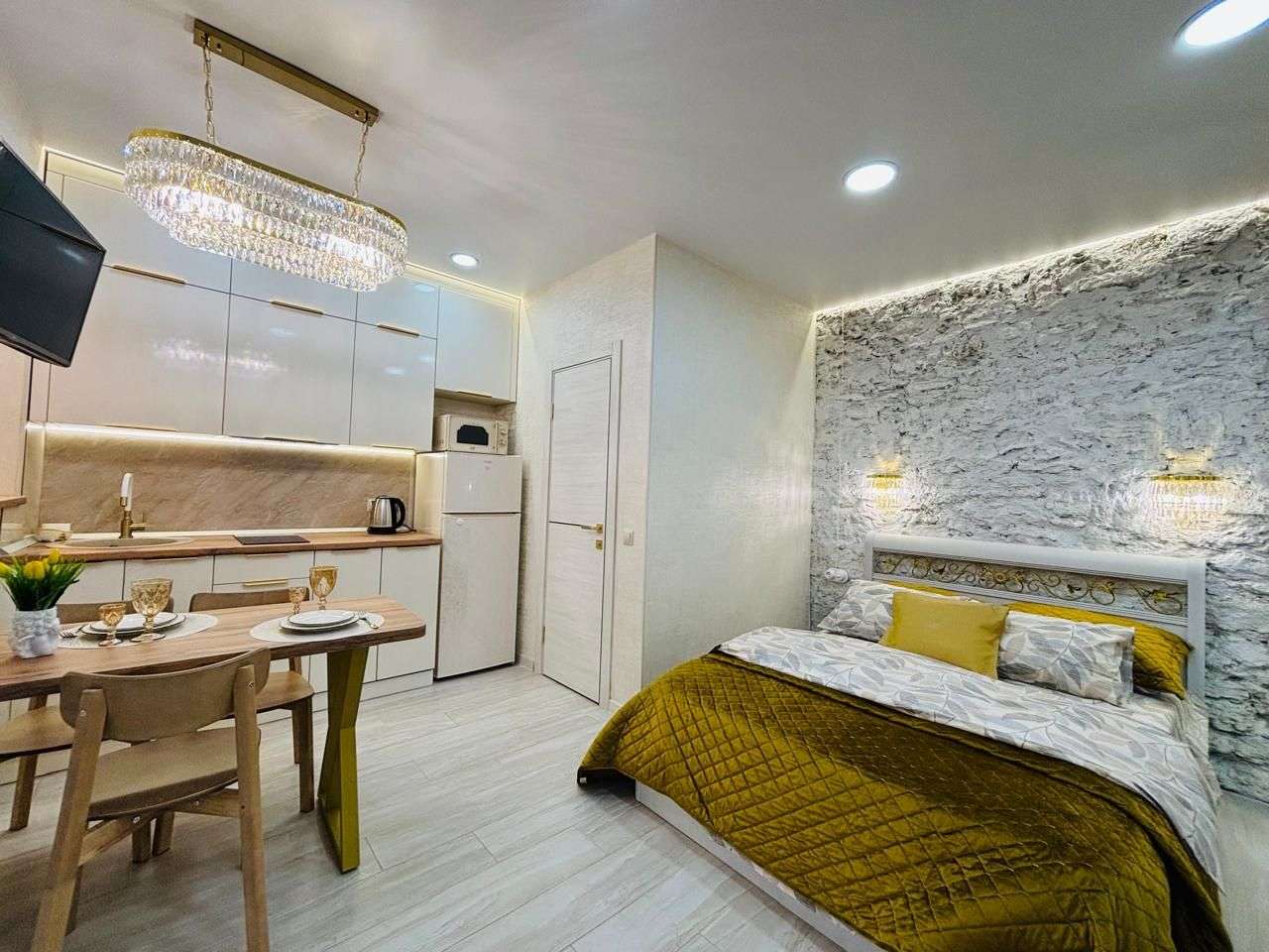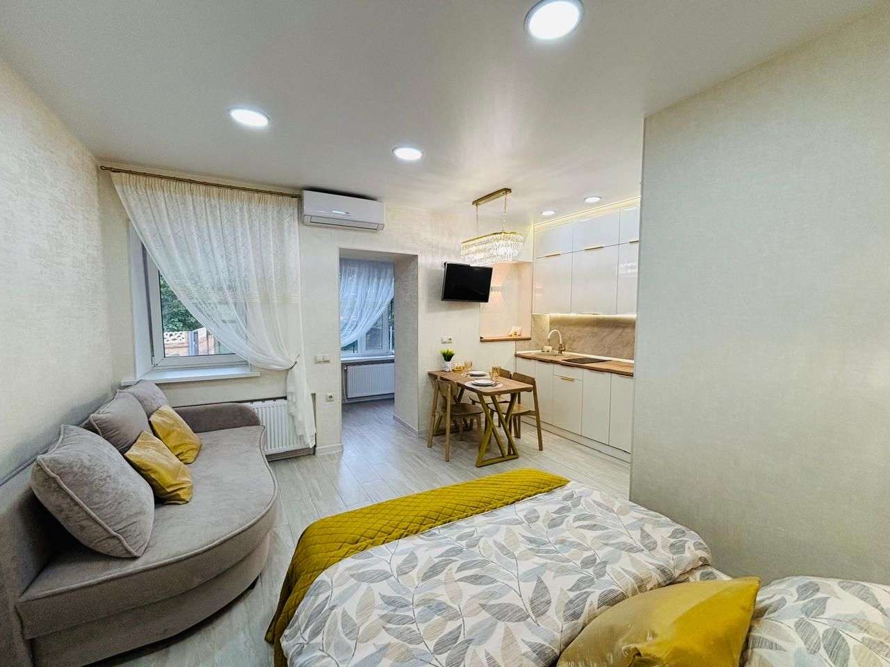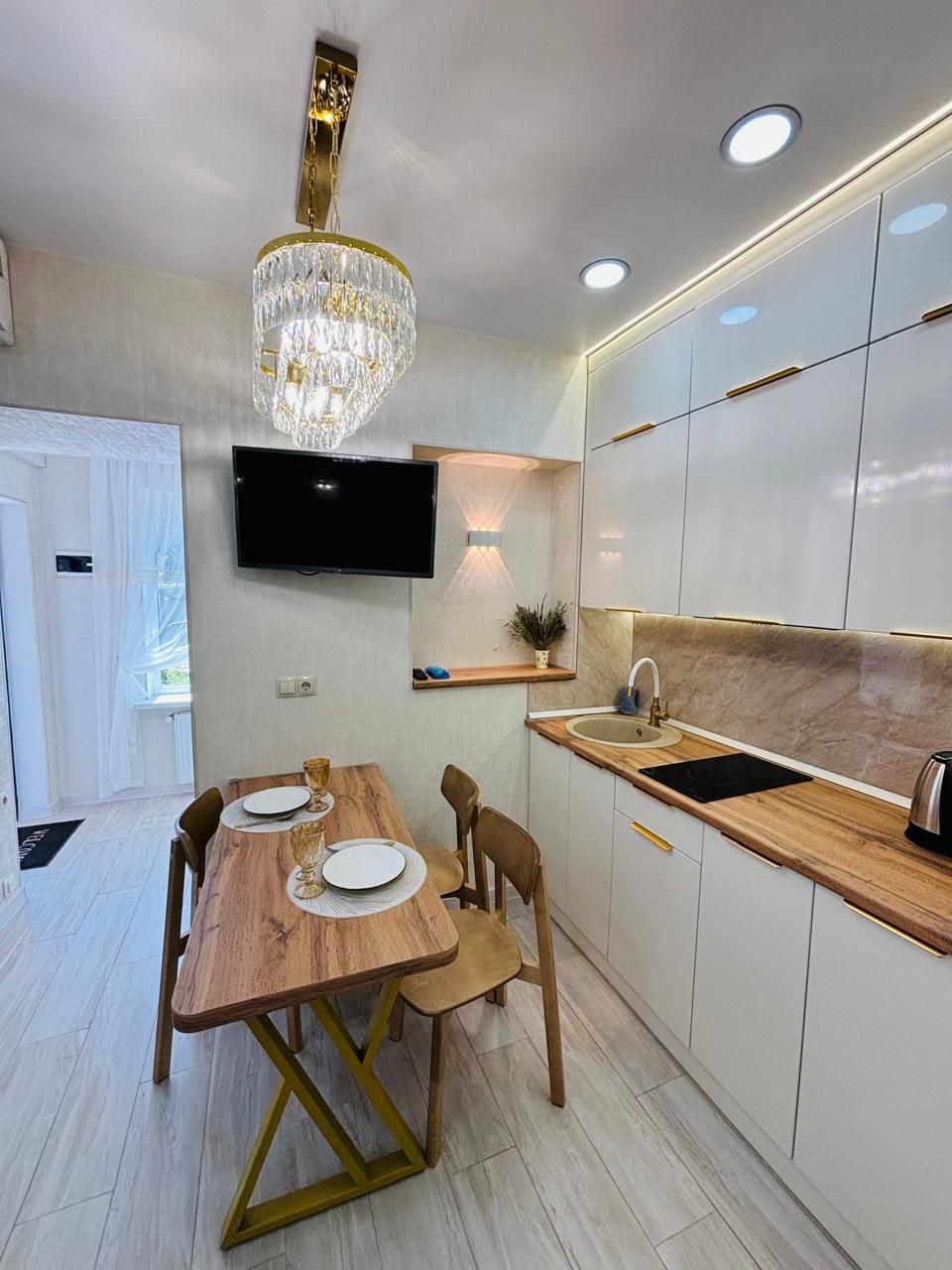 Квартира располагается в общем дворе, но имеет собственный вход. В студии есть всё необходимое для комфортного проживания: двуспальная кровать, раскладной диван, кондиционер, телевизор, Wi-Fi, холодильник, СВЧ, стиральная машина. В студии автономное отопление — можно включать по необходимости, независимо от сезона. Имеется столик и стульчики, которые можно выставить во двор и наслаждаться утренним кофе или вечерним отдыхом на свежем воздухе.