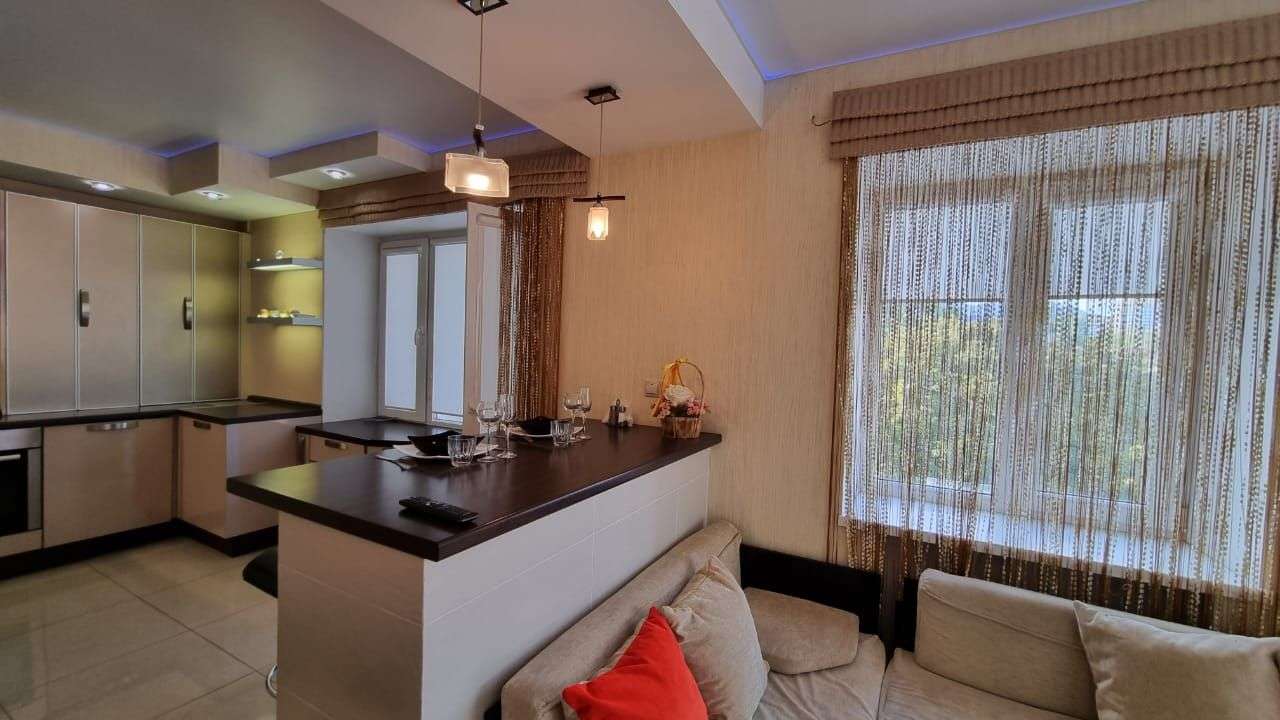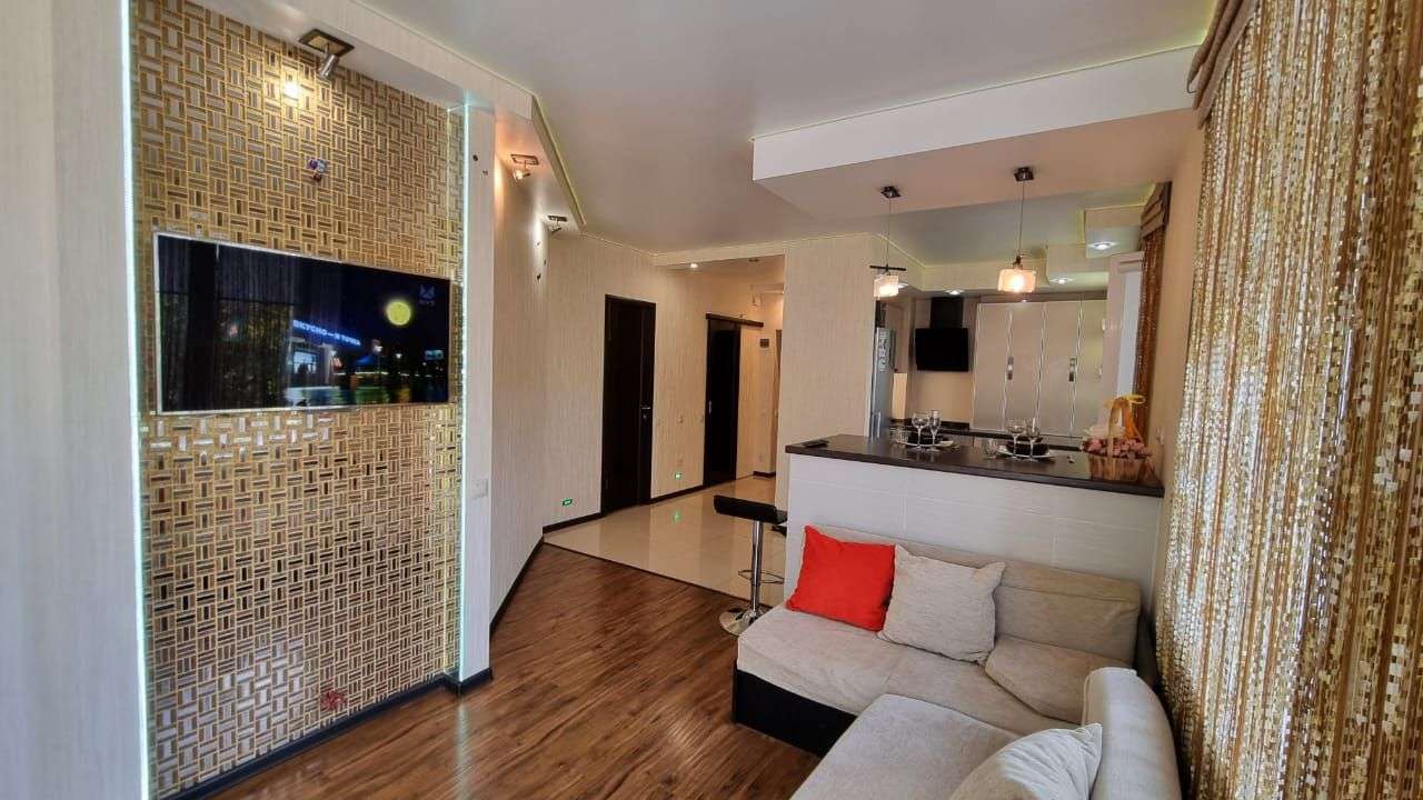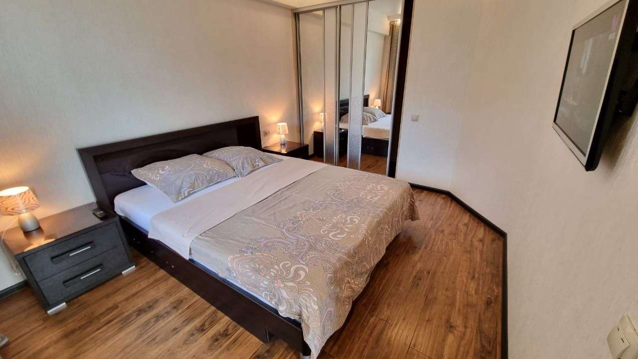 В квартире отдельная спальня с двуспальной кроватью, кухня-гостиная с диваном, установлена стиральная машина, посудомоечная машина, есть холодильник, телевизоры, беспроводной интернет (Wi-Fi) и т.д и т.п.