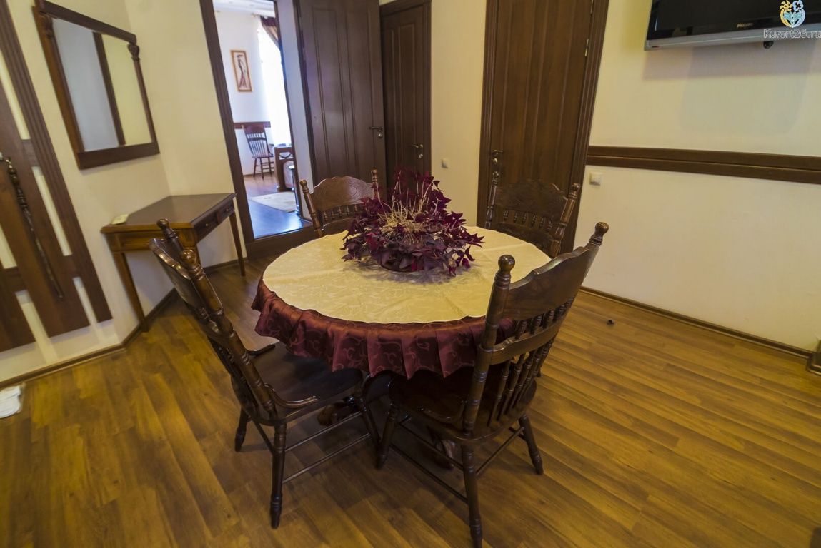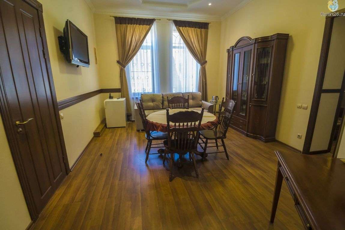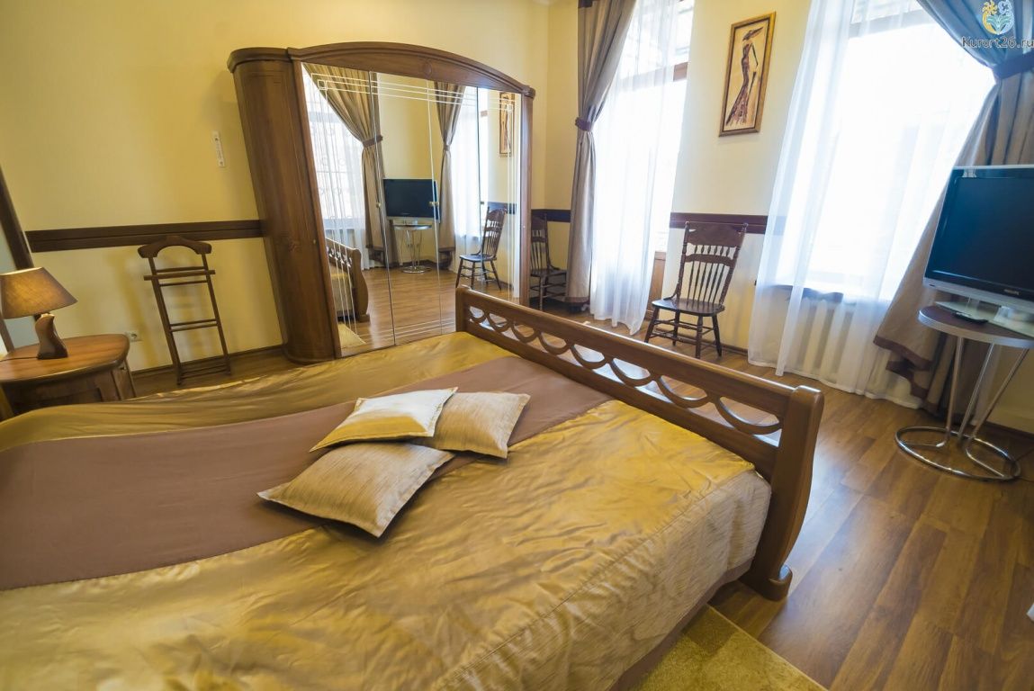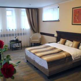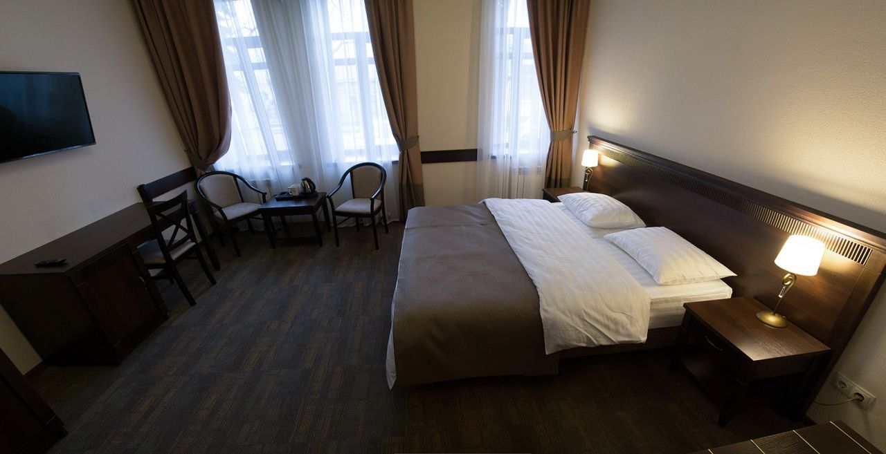 "Герой нашего времени", стены украшены авторскими работами известных местных художников. Для гостей доступны просторные 1-но и 2-х местные однокомнатные номера повышенной комфортности, 2-х комнатный люкс, 3-х комнатные апартаменты. Все номера оснащены новой мебелью, TV с функцией «Смарт», телефонами,