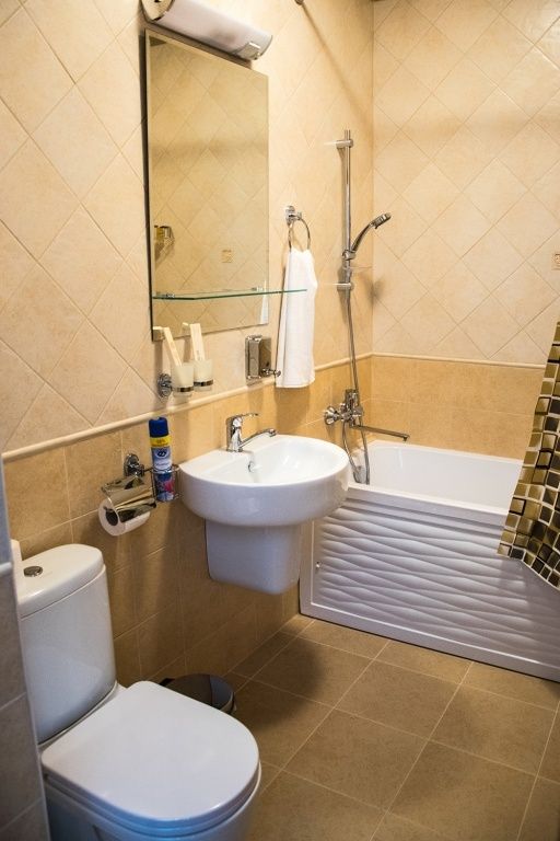 сейфами, гладильной и чайной станциями, набором посуды, в санузле — ванна. Wi-Fi доступен на всей территории центра.