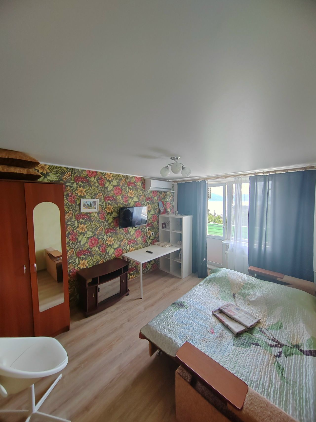 В квартире два кондиционера, два телевизора и другие удобства. Балкон с прекрасным видом на море. Этаж 5.