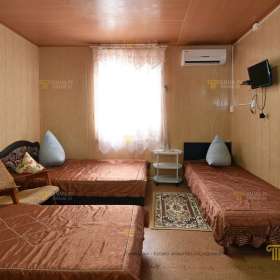 Гостям предлагаются комфортабельные комнаты: одна на первом этаже и две комнаты на втором. Есть две зоны отдыха со столиками на открытом воздухе. На втором этаже двухкомнатный с двумя изолированными спальными комнатами. В комнатах своя кухня, санузел с душем, есть кондиционер и телевизор.