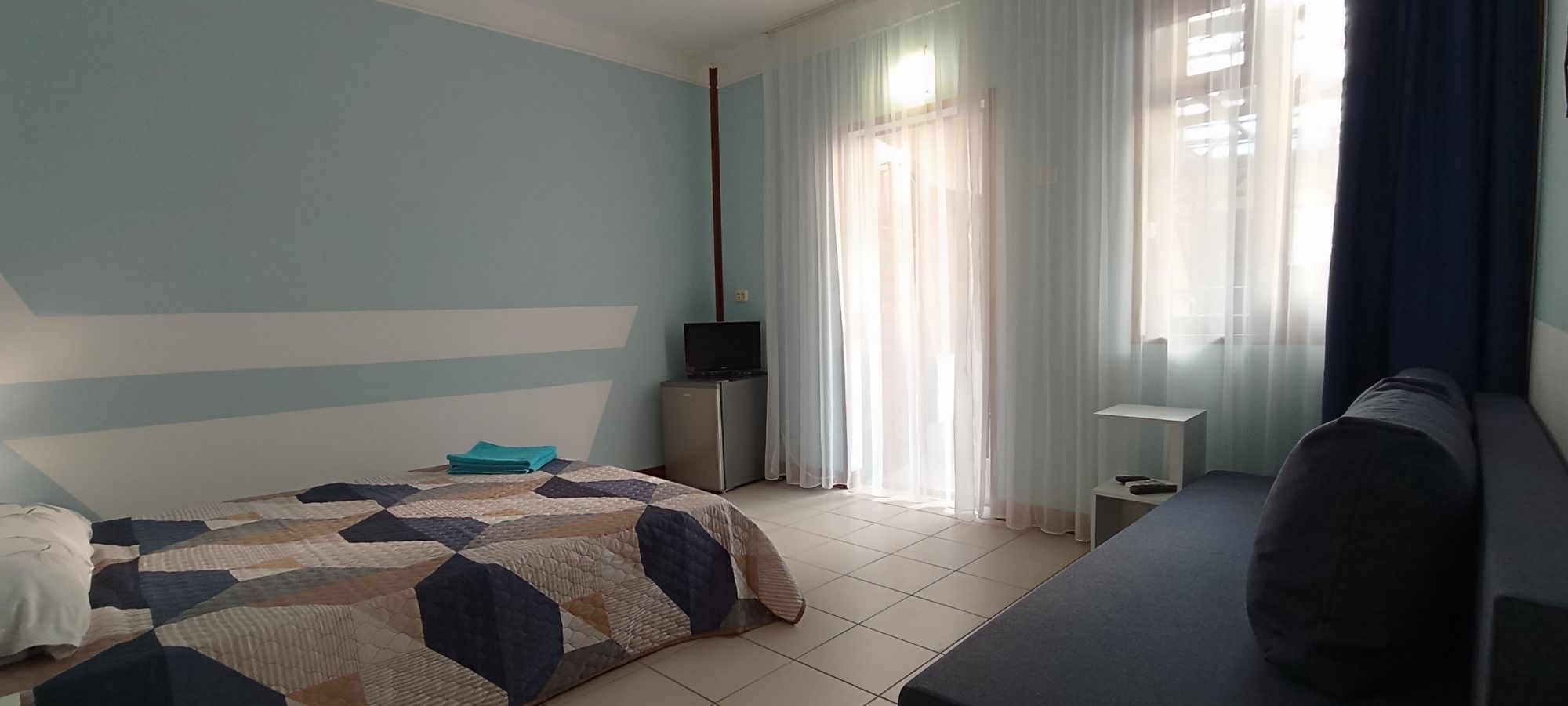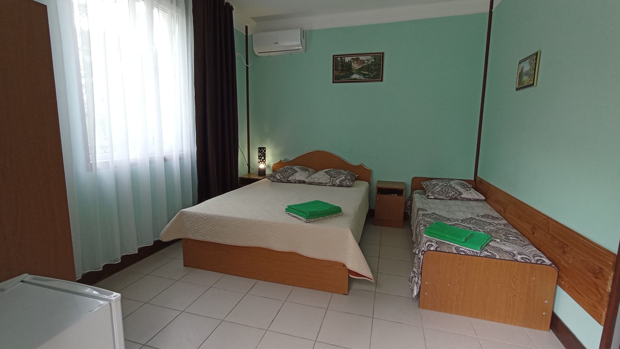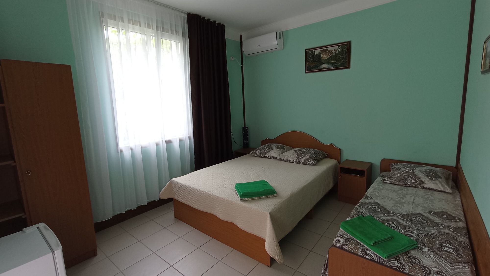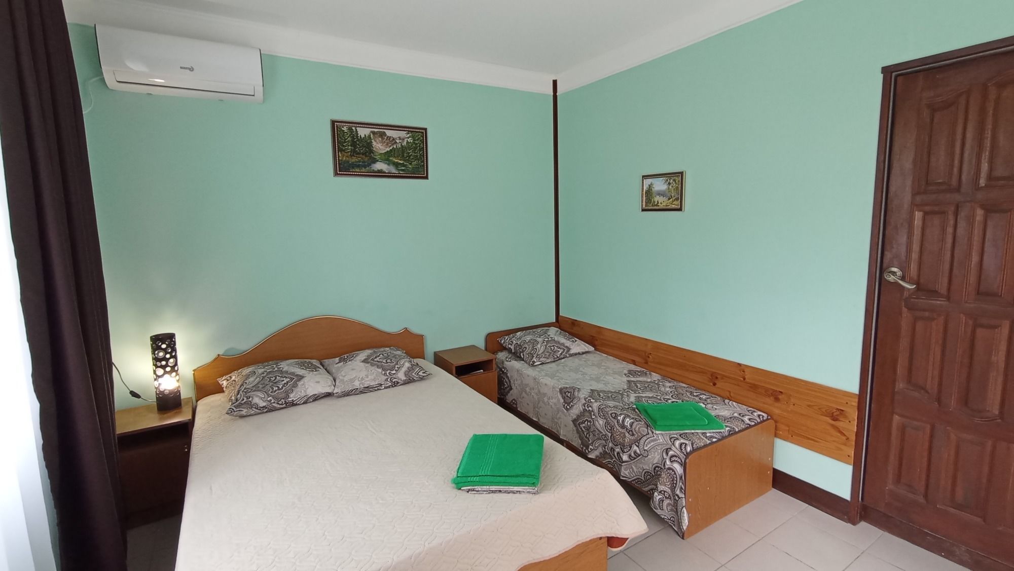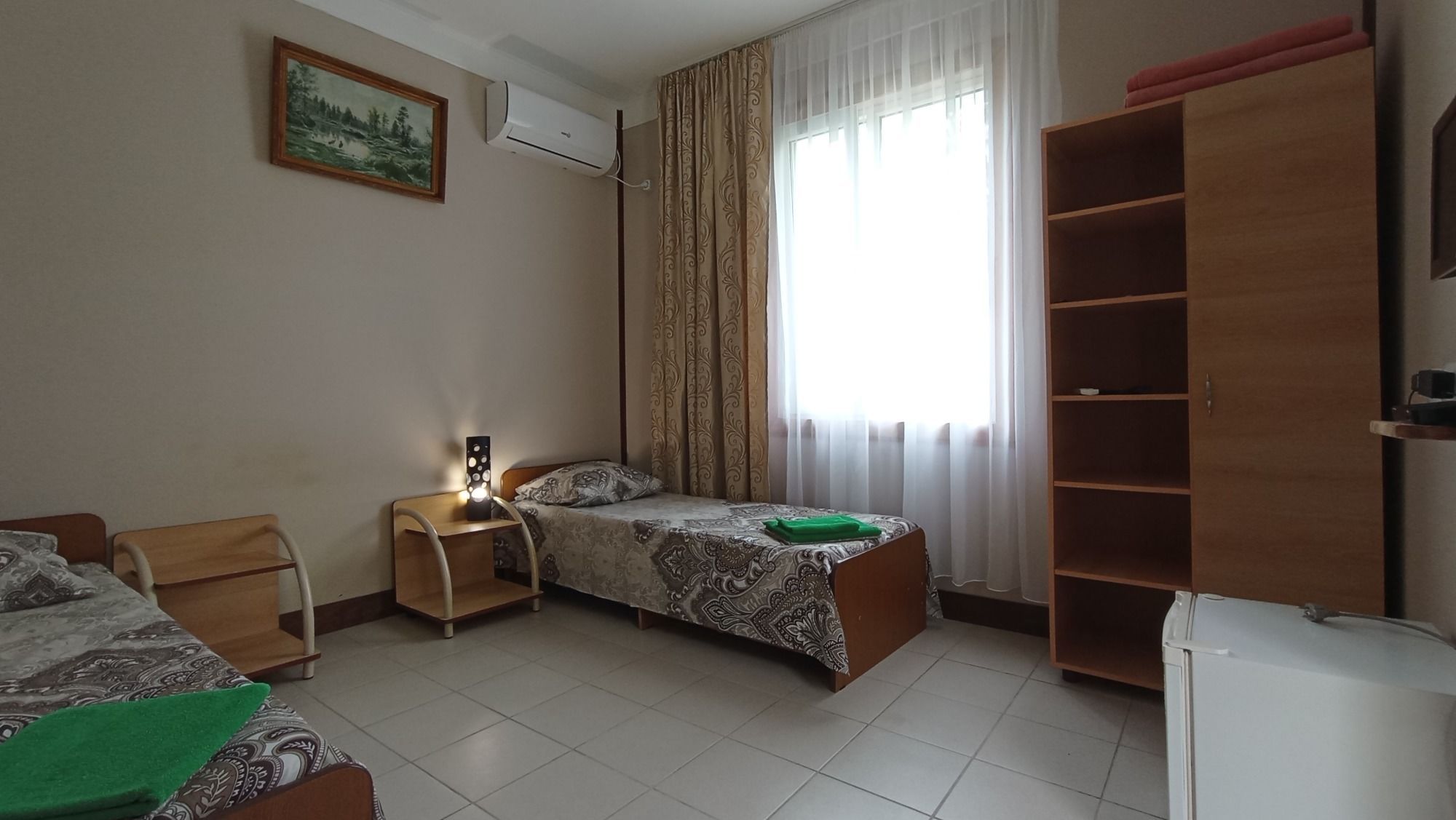 Для размещения предлагаются 2х, 3х, 4х местные комнаты с удобствами. Каждая оснащена душем, санузлом, телевизором и сплит-системой. Есть семейные номера с кухней.