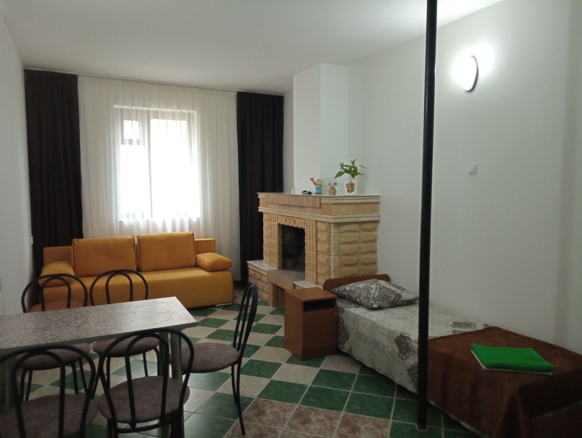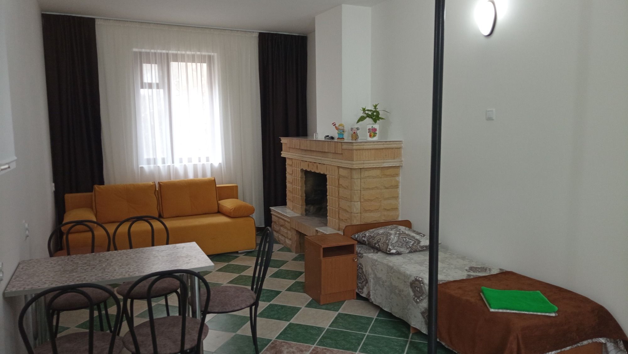 даже в самый жаркий день. Во дворе оборудована беседка, где можно поиграть в настольные игры, попеть в караоке, покушать или просто помечтать за кружечкой любимого напитка, есть зона для барбекю с мангалом, где вы можете как самостоятельно, так и при нашей помощи приготовить желаемое. Для детей игральный домик, настольные игры, мягкие игрушки и пр., вечерами для детей и взрослых просмотр мультфильмов и фильмов по желанию. Также на территории есть бассейн, для загара установлены шезлонги. Предусмотрена парковка. Wi-Fi на всей территории.