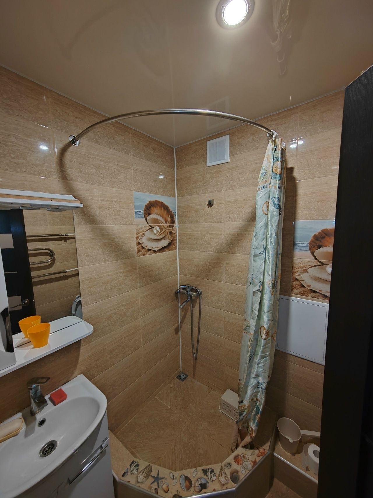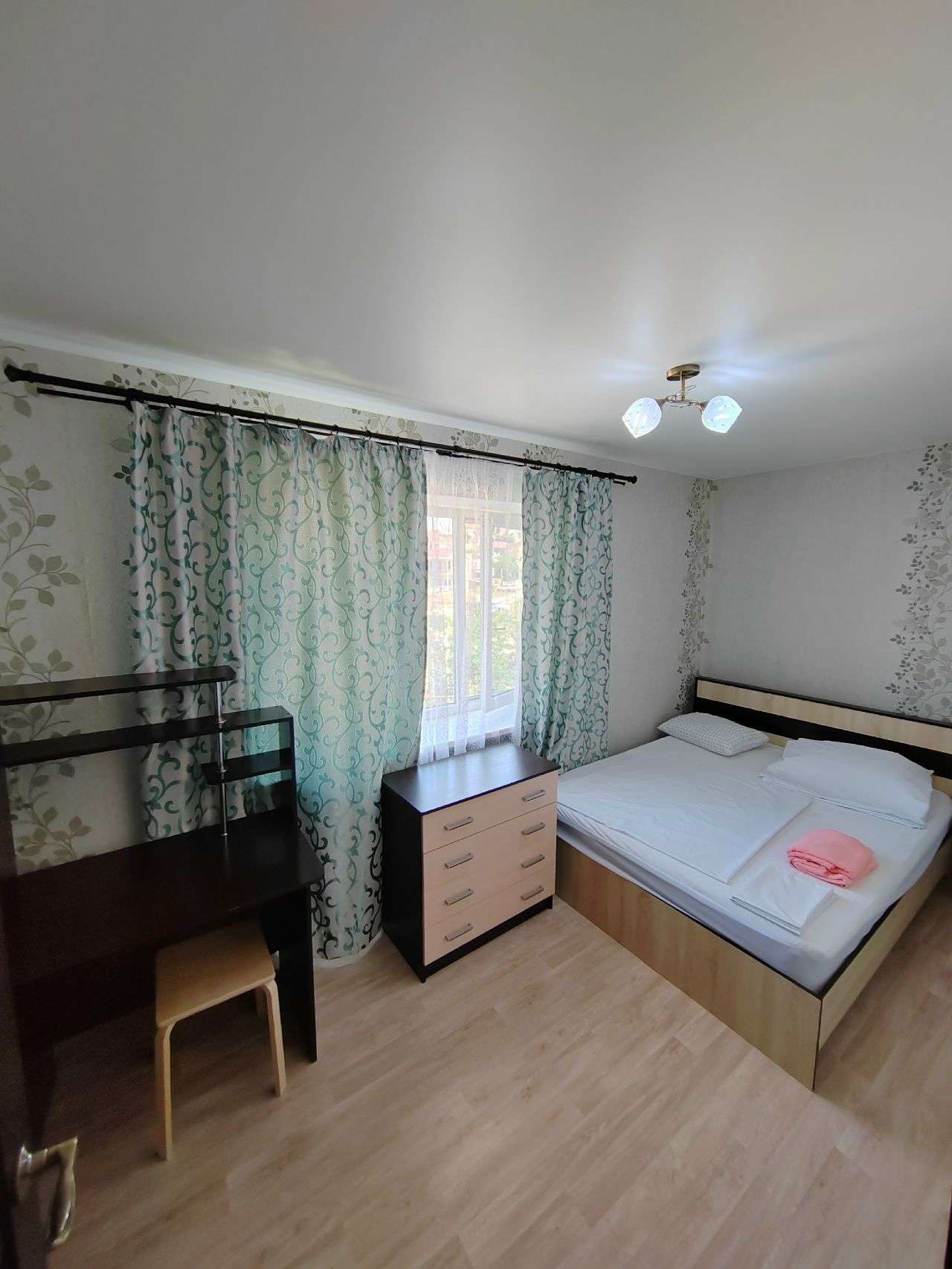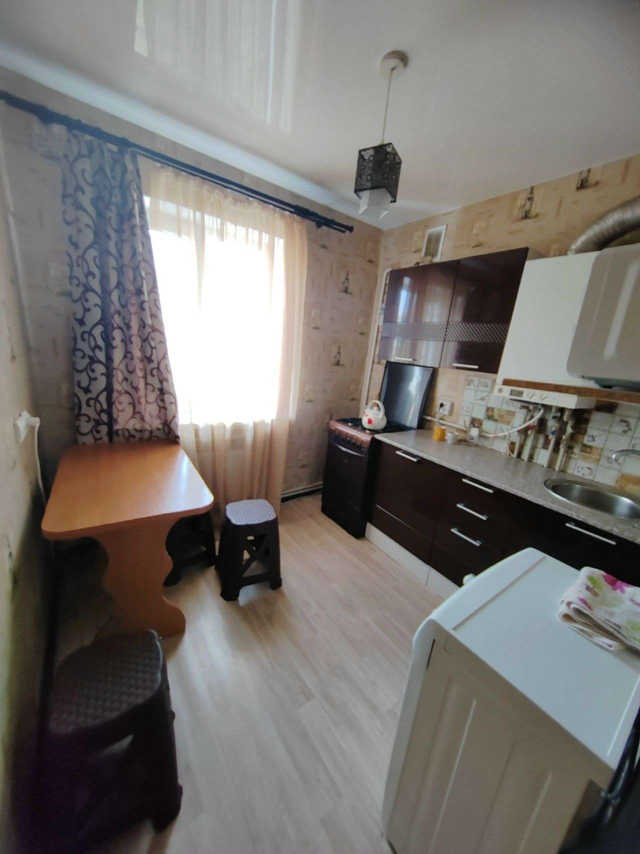 Квартира расположена на 4 этаже. Все удобства. В первой комнате: два дивана, шкаф, кондиционер, телевизор и балкон. В дальней комнате кровать двуспальная и две тумбы. На кухне стиральная машина, высокий холодильник, микроволновка, чайник, посуда, есть утюг.