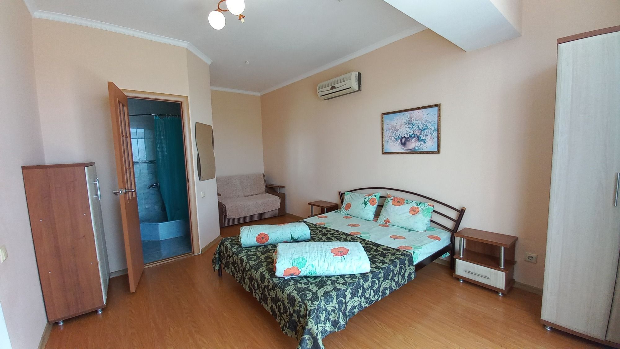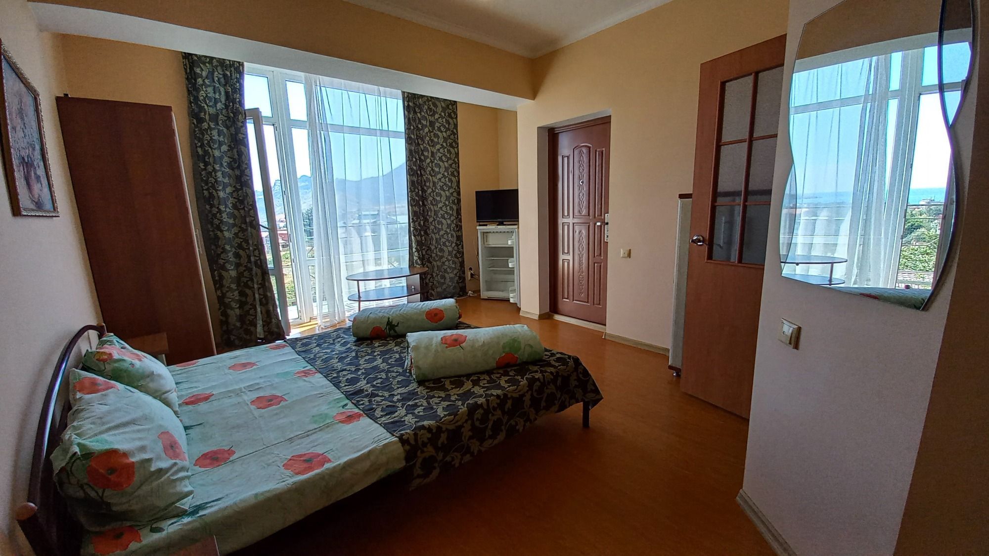 На Ваш выбор представлены 2-х, 3-х и 4-местные комнаты и 2-комнатные студии, идеально подходящие для пар, семейного отдыха или компании друзей. Каждая комната обставлена с любовью к деталям, чтобы создать атмосферу уюта и комфорта. В них есть все необходимое для комфортного пребывания: санузлы с душевой кабиной, бойлером и т.д., двуспальные и односпальные кровати, раскладные кресла, диваны, кондиционеры, телевизоры, холодильники, сейфы, шкафы. Есть студии с мини-кухнями. В каждой комнате - лоджия. С панорамных окон открывается вид на заповедник Карадаг, Коктебельскую бухту.