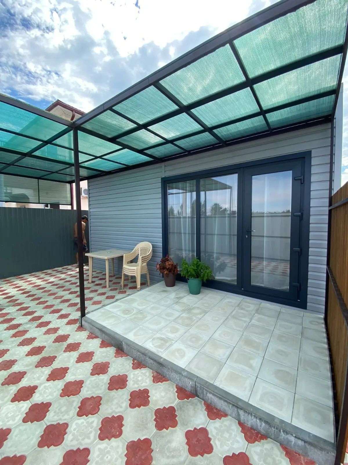 Во дворе 2 дома на 4-5 человек. В каждом доме есть всё необходимое для полноценного отдыха: две изолированные спальни, просторная кухня-гостиная, душ, туалет, уютная терраса, где так приятно пить утренний кофе.