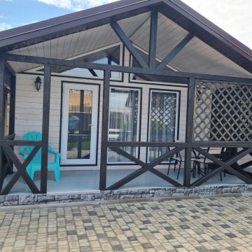 Нам очень понравилось, хорошая территория, ухоженная, 4 домика, до пляжа очень близко. Есть батут, мангальная зона, качели садовые, кран, где помыть ноги от песка после пляжа. Около дома своя мини-сушилка и побольше, с прищепками. На террасе дома мини-кухня с плиткой индукционной, набор посуды ИКЕА, посуды для приготовления, стол, стулья. В доме есть кондиционер, холодильник, телевизор,на каждый...